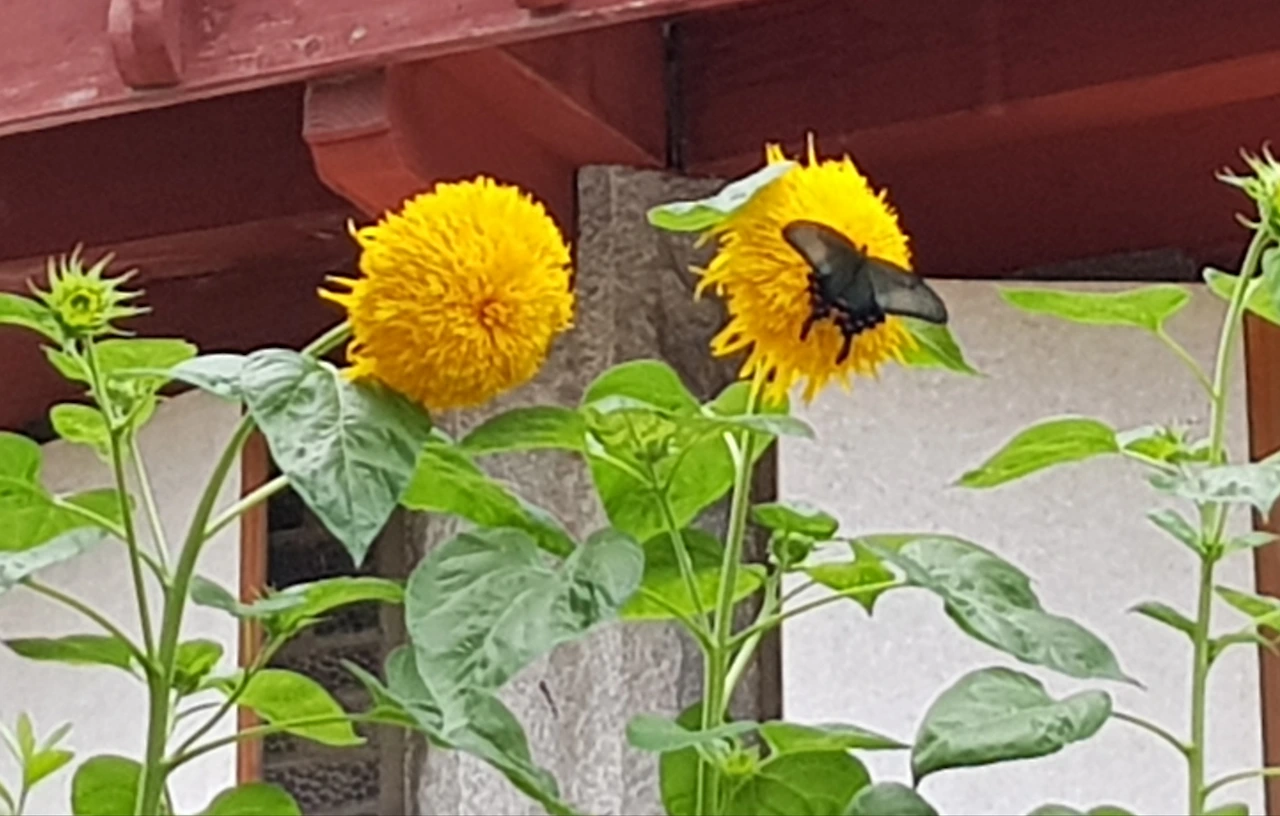 샛노란 해바라기꽃 십여 송이