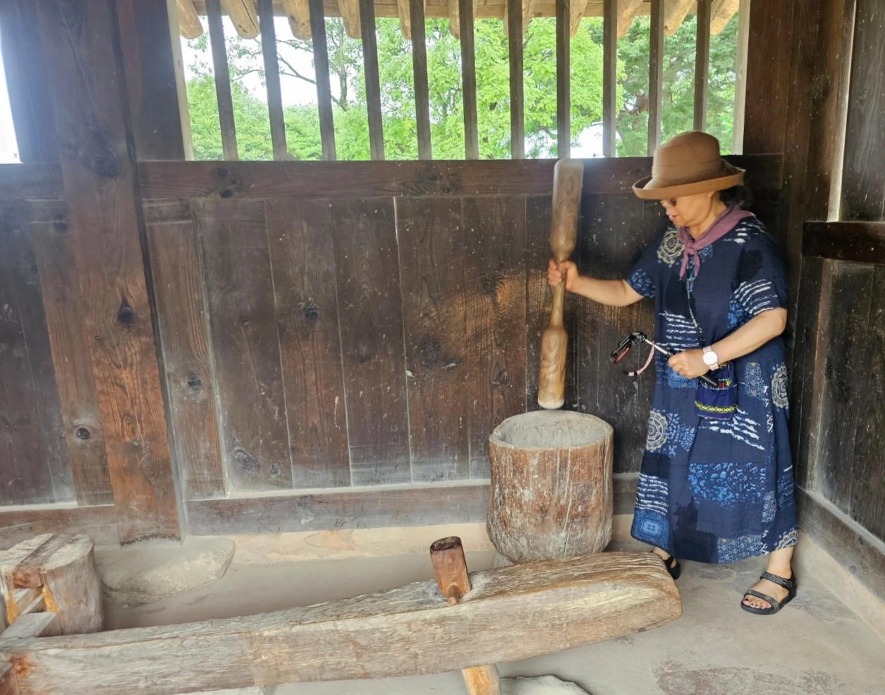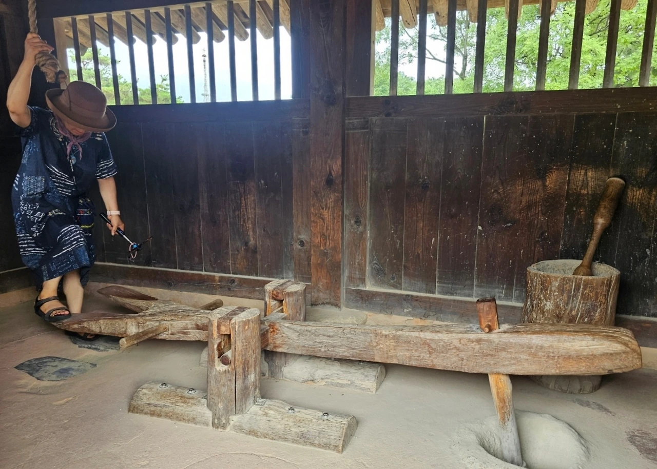 부엌에 들어가 솥뚜껑도 열어보고 디딜방아도 절구방아도 찧어보며