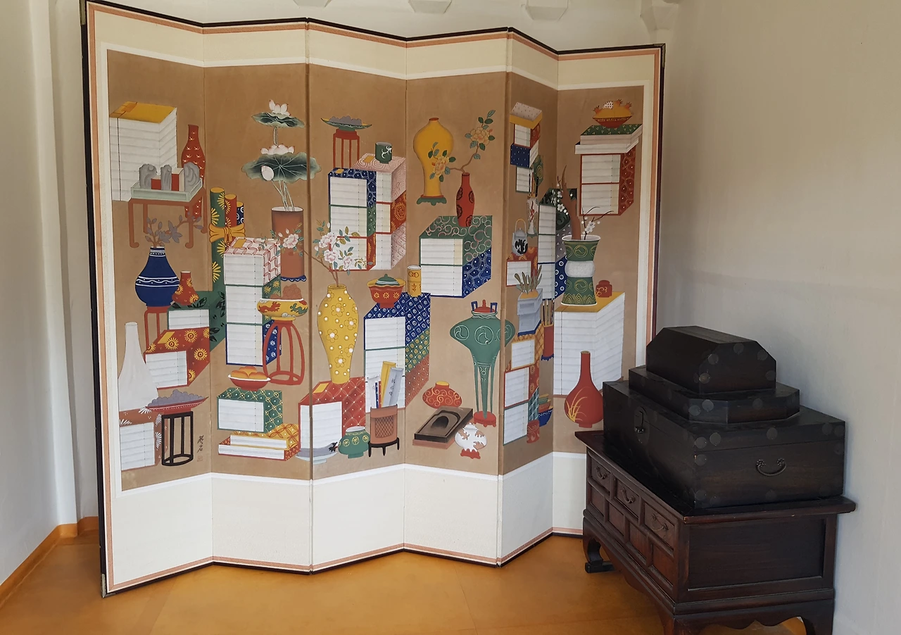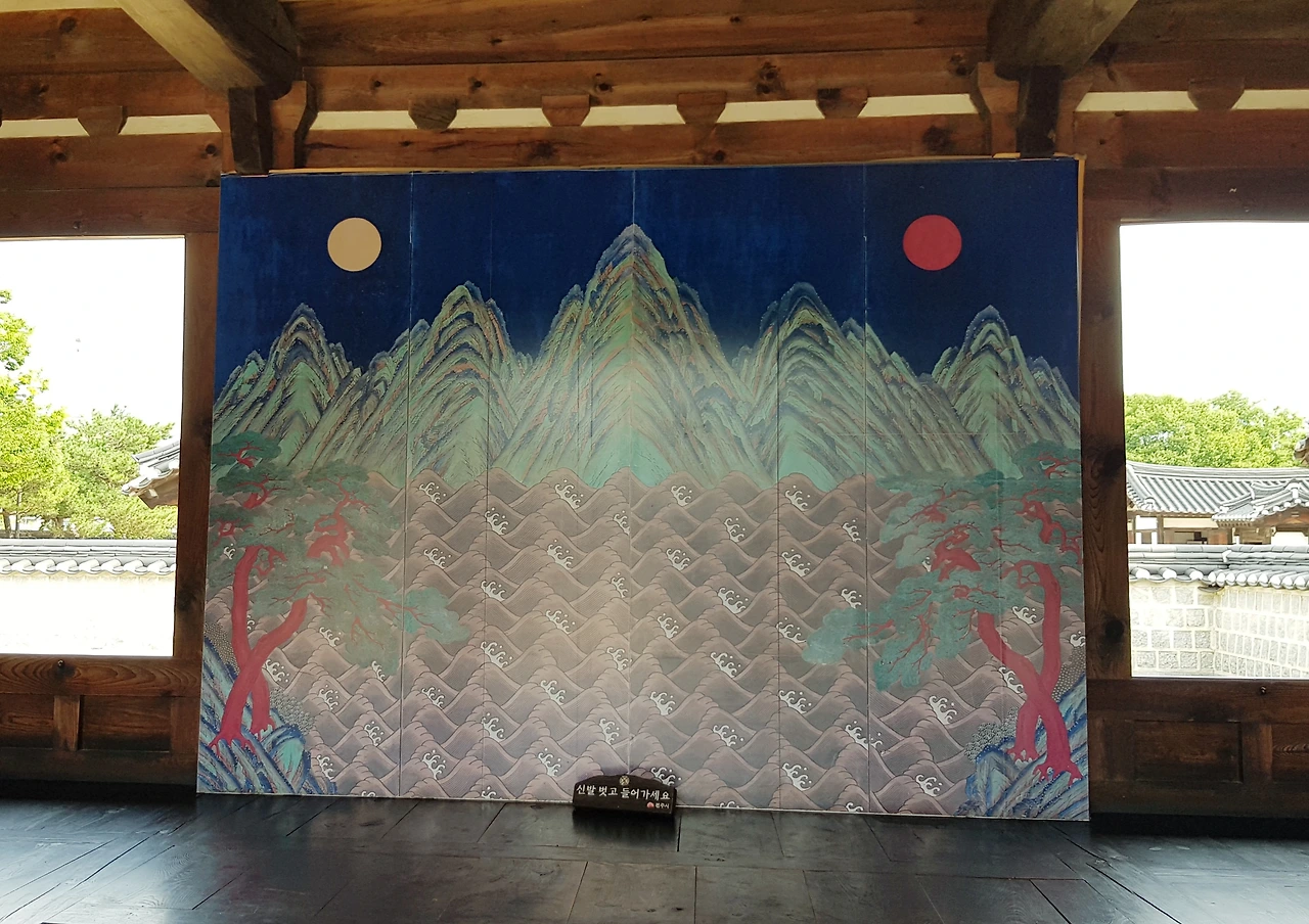 일월도가 전시된 마루에 올라앉아 왕이 되어 사진도 찍어보고