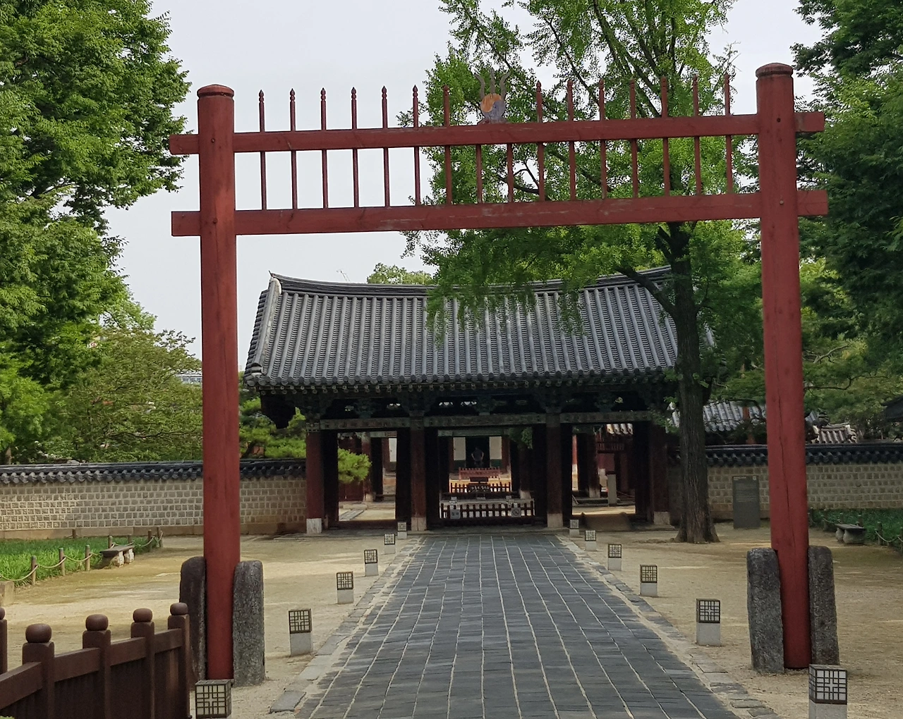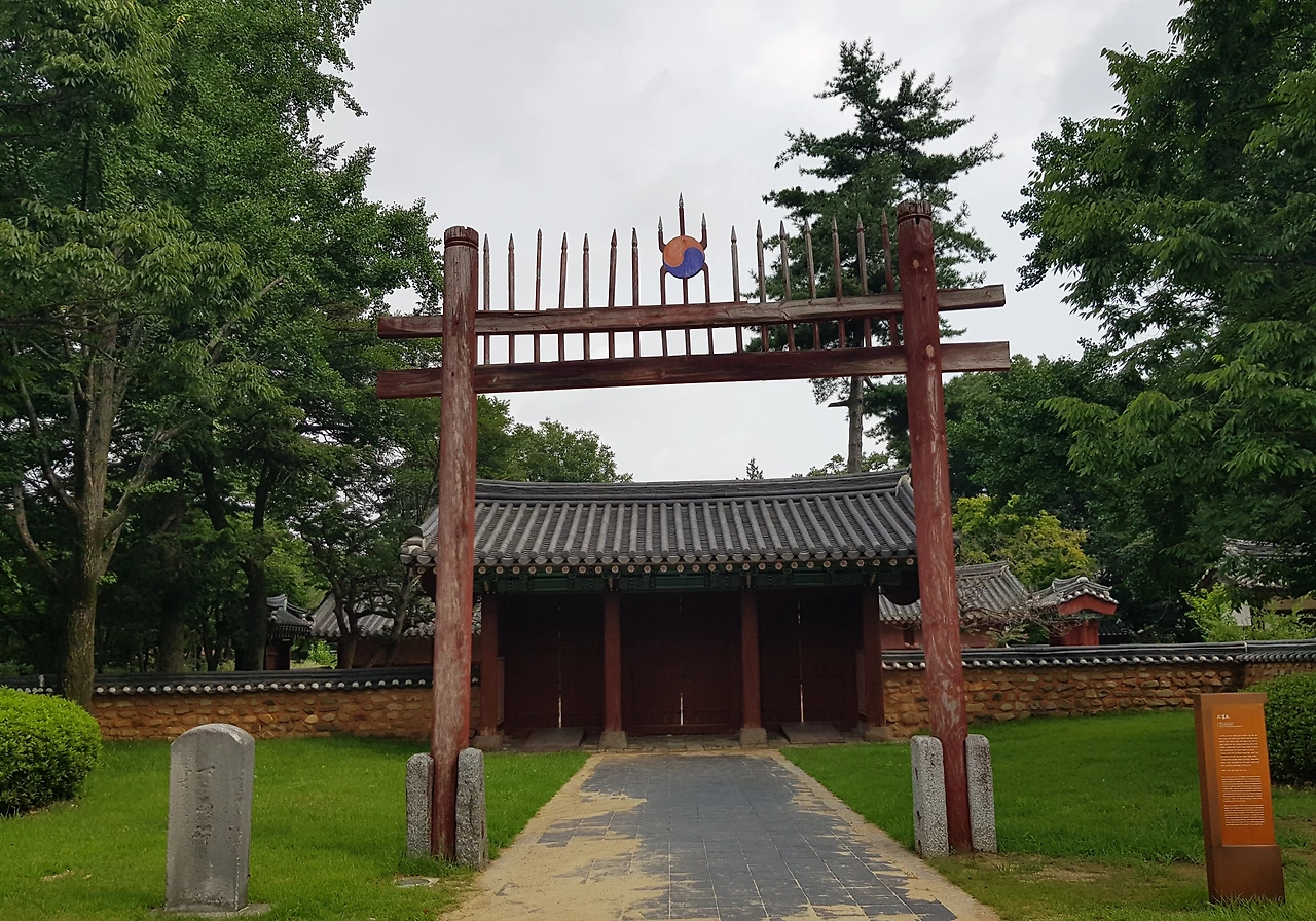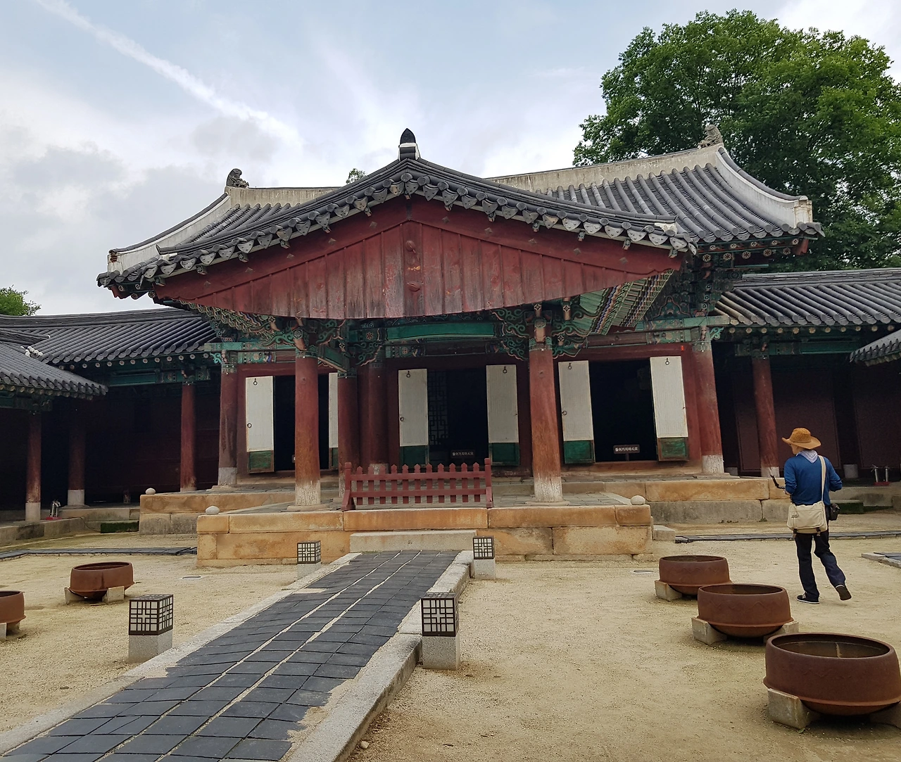 먼저 홍살문을 지나 들어가니 중문 그곳을 통과하니 왕의 길이 쭉ㅡㅡ그리고 정청이 있는데 그 길 옆에 양쪽으로 커다란 가마솥이 세 개씩 여섯 개가 있었다