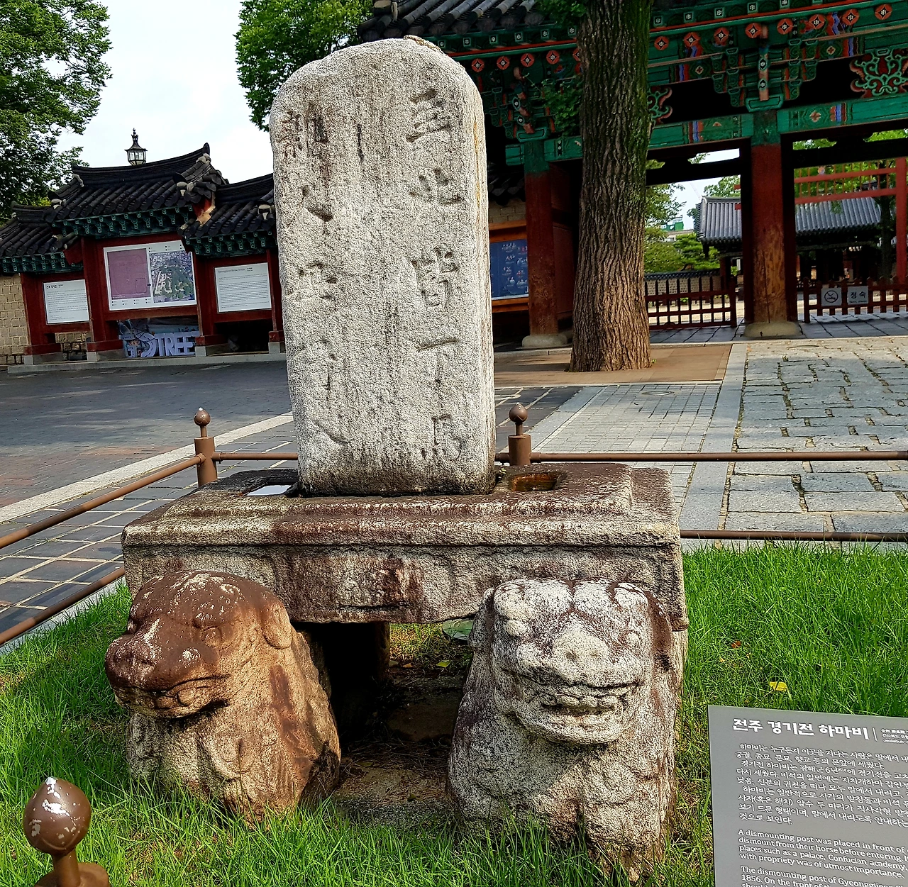문 앞에는 오랜 역사를 느끼게 하는 하마비가 턱 지키고는 겸손한 마음으로 경기전을 임하라 명하는 것 같았다