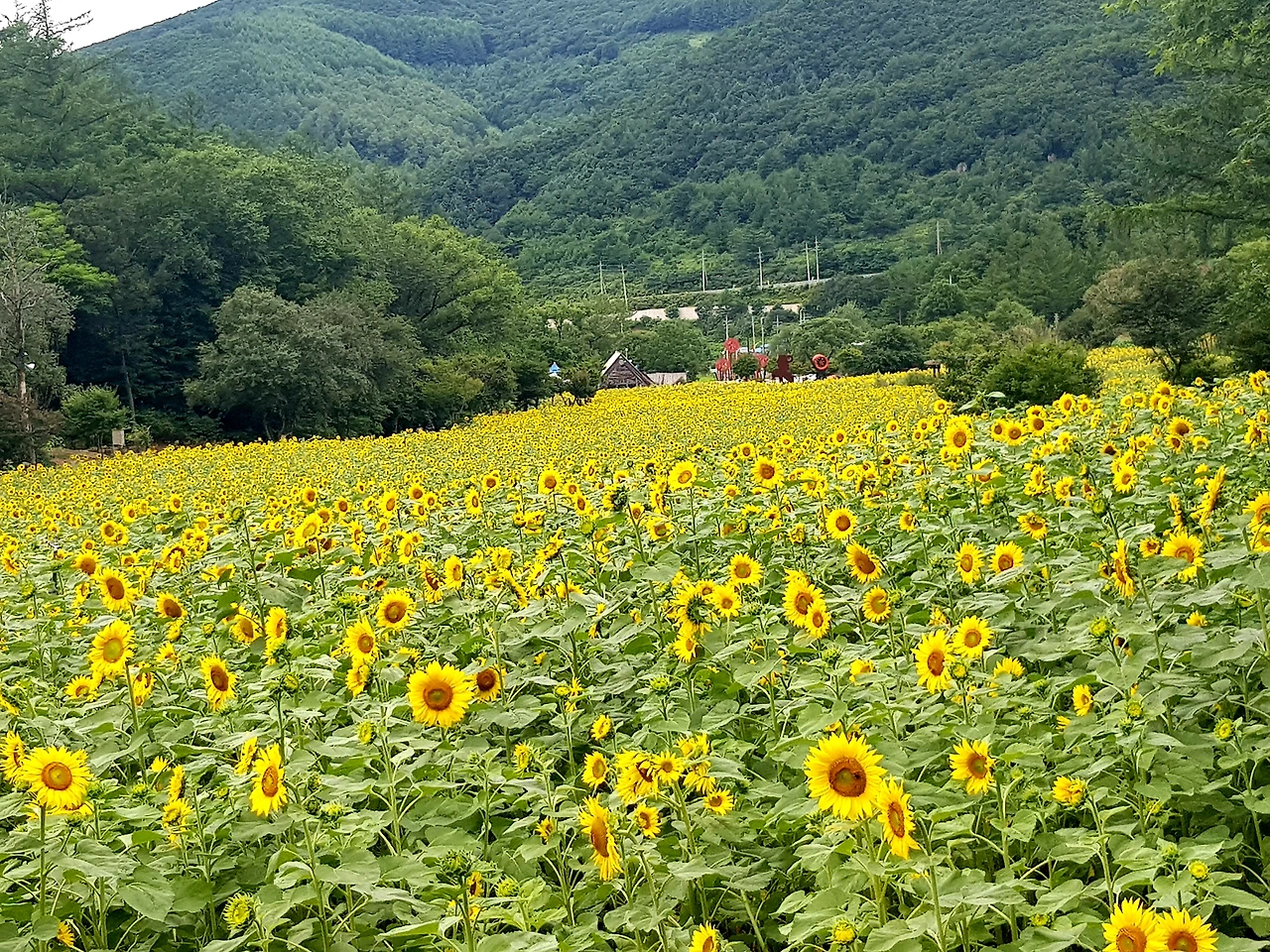 입장료가 적어 미안할 만큼 넓은 면적에 샛노란 해바라기가 생글 거린다