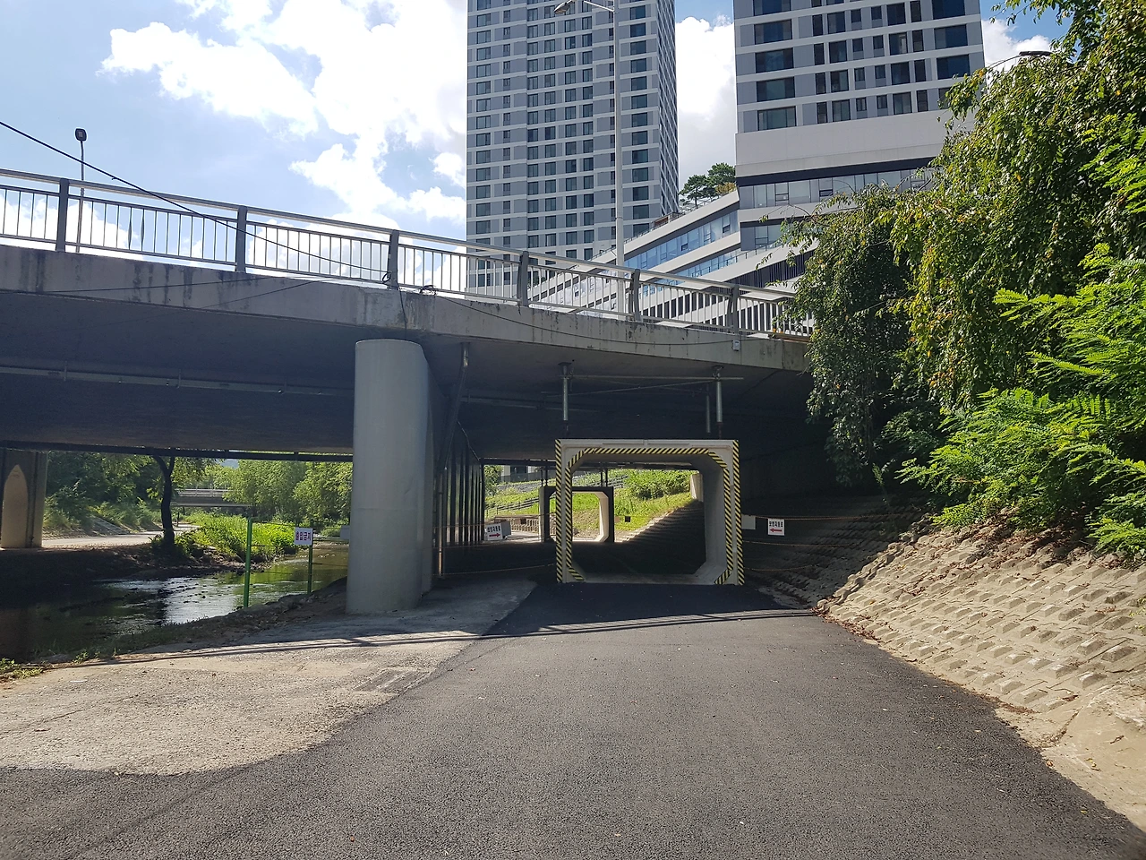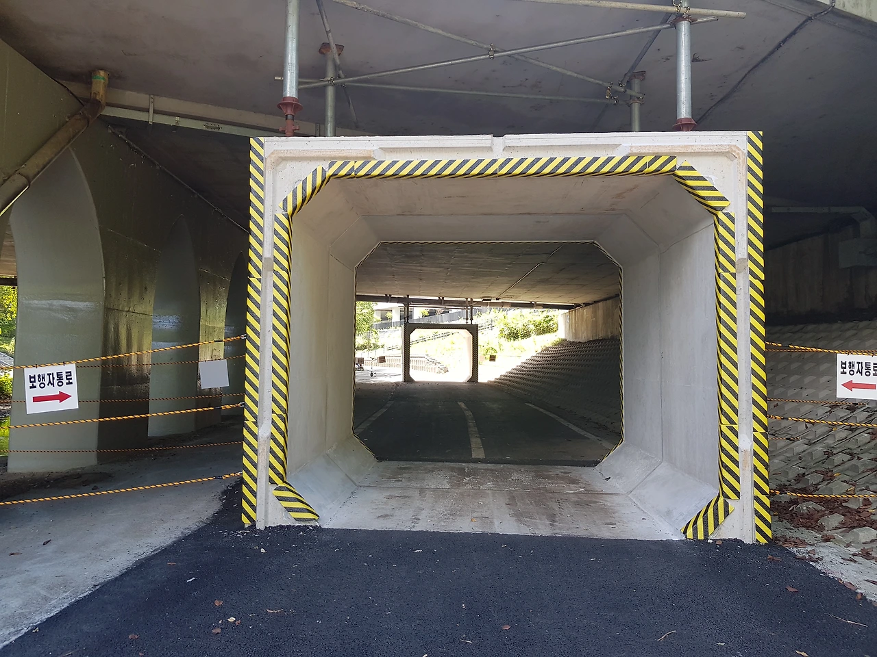 요즘 다수의 다리 밑에 작은 통로를 받쳐 놓고는 그 안으로 지나다니라 표시도 해 놓았다