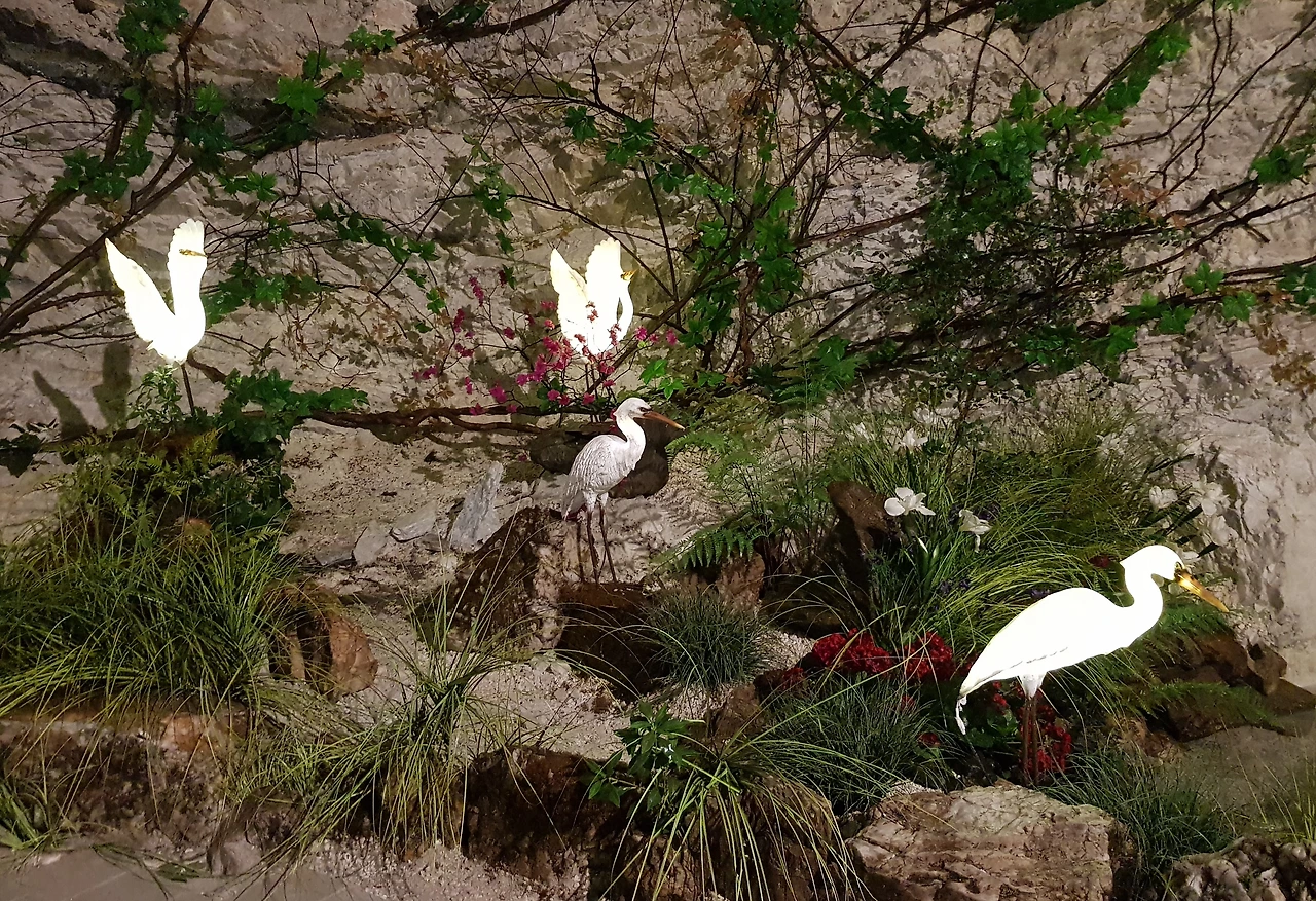 봄꽃동산 옆에는 한가로운 백로들이 우아한 자태 뽐내며 여행객과 얘기하고 싶다 하고