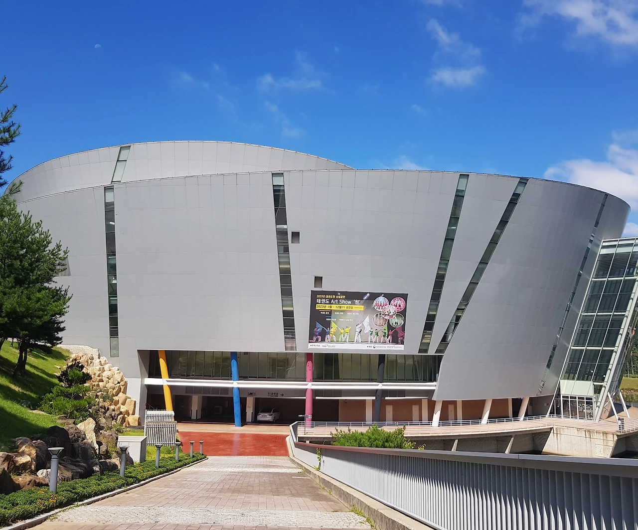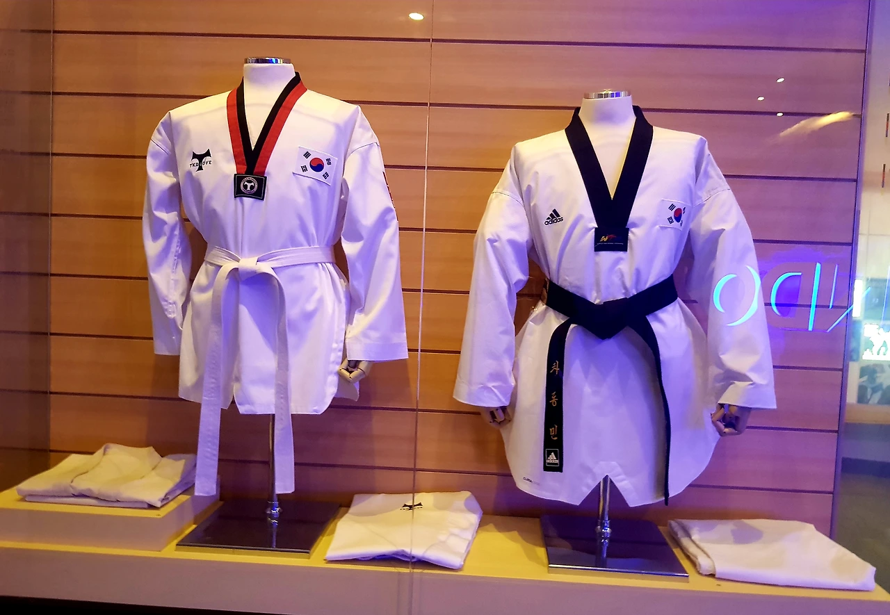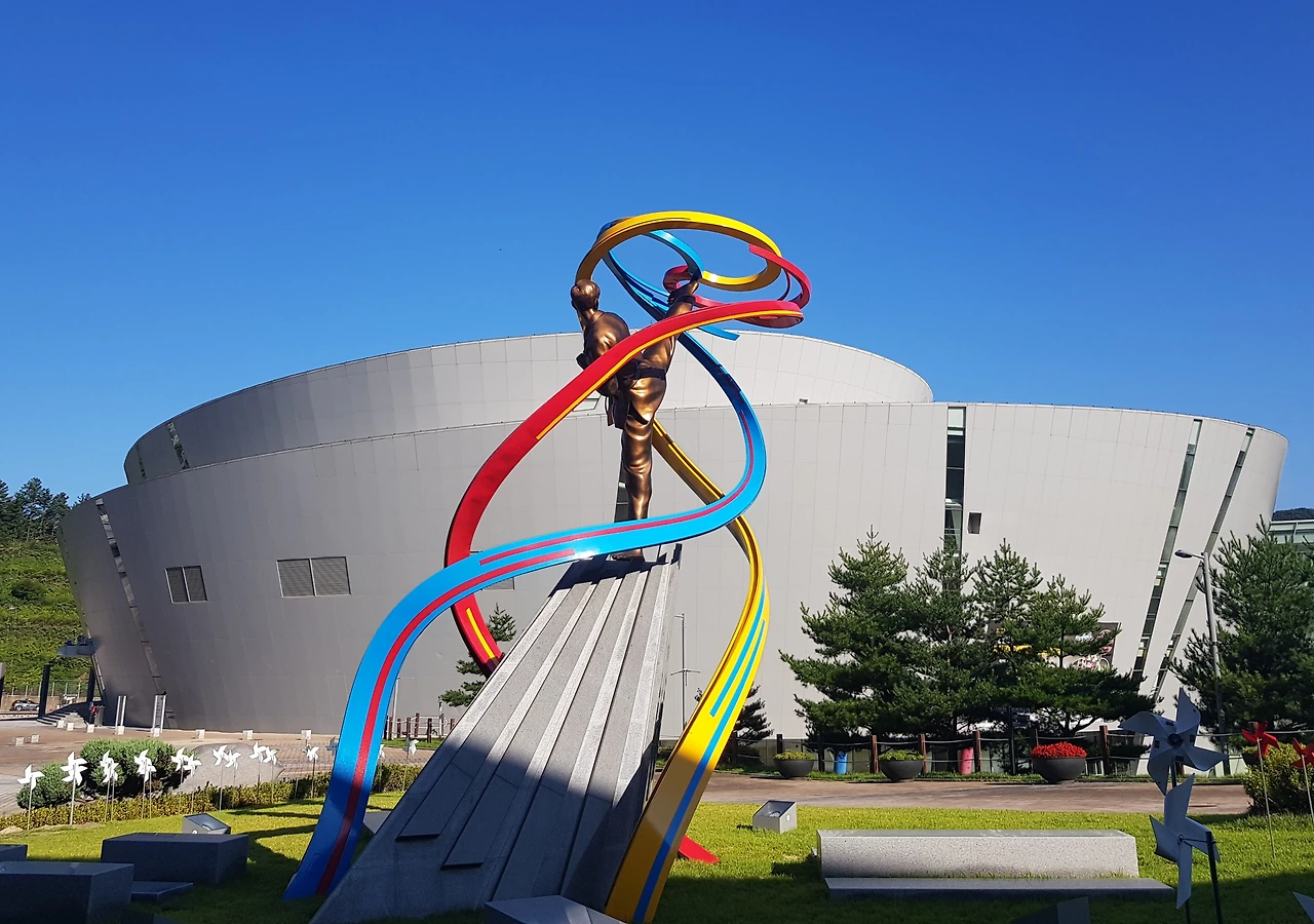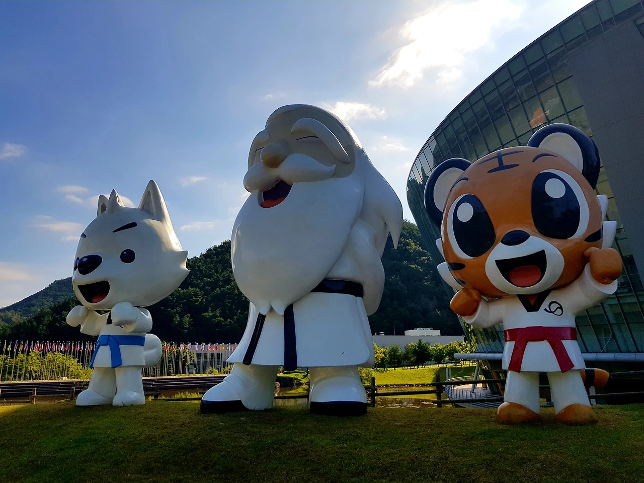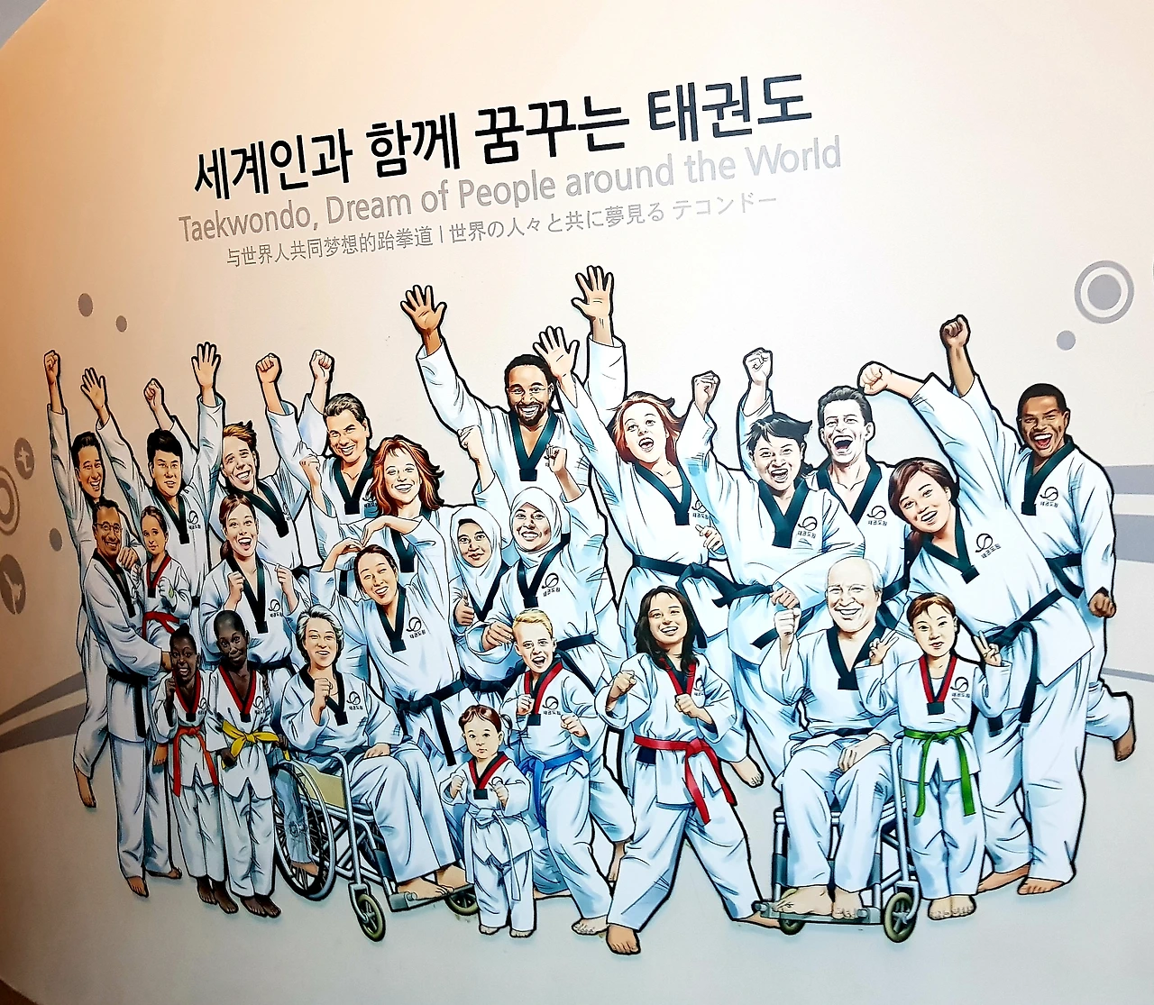 태권도의 동작을 뽐내는 멋진 동상 앞에서 감탄을 하며 둘러보다가 바로 옆의 국립태권도 박물관으로 입장했다