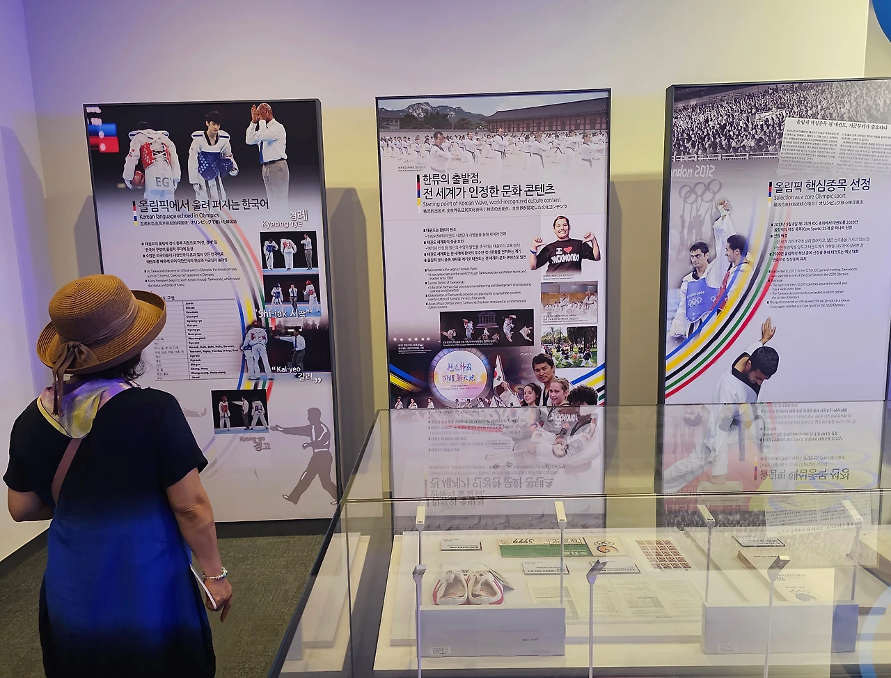 태권도의 기술과 정신으로 삶을 변화시킨 사람들 그리고 세계인들과 함께하는 태권도의 이야기들을 전시하고 있었다