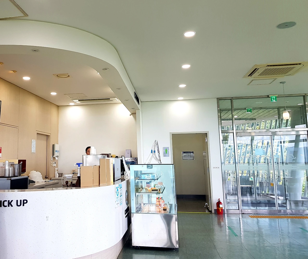 전망대 3층으로 내려오니 카페에서 차와 빵도 먹을 수 있었는데 빨리 내려가 밥을 먹고 싶어 다시 모노레일을 타고 내려와 셔틀버스를 갈아타고 식당건물 앞에서 내렸다
