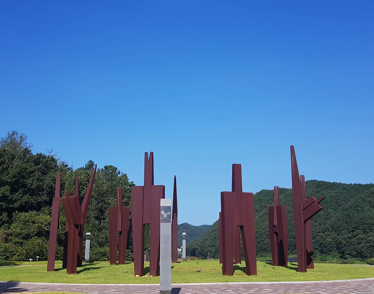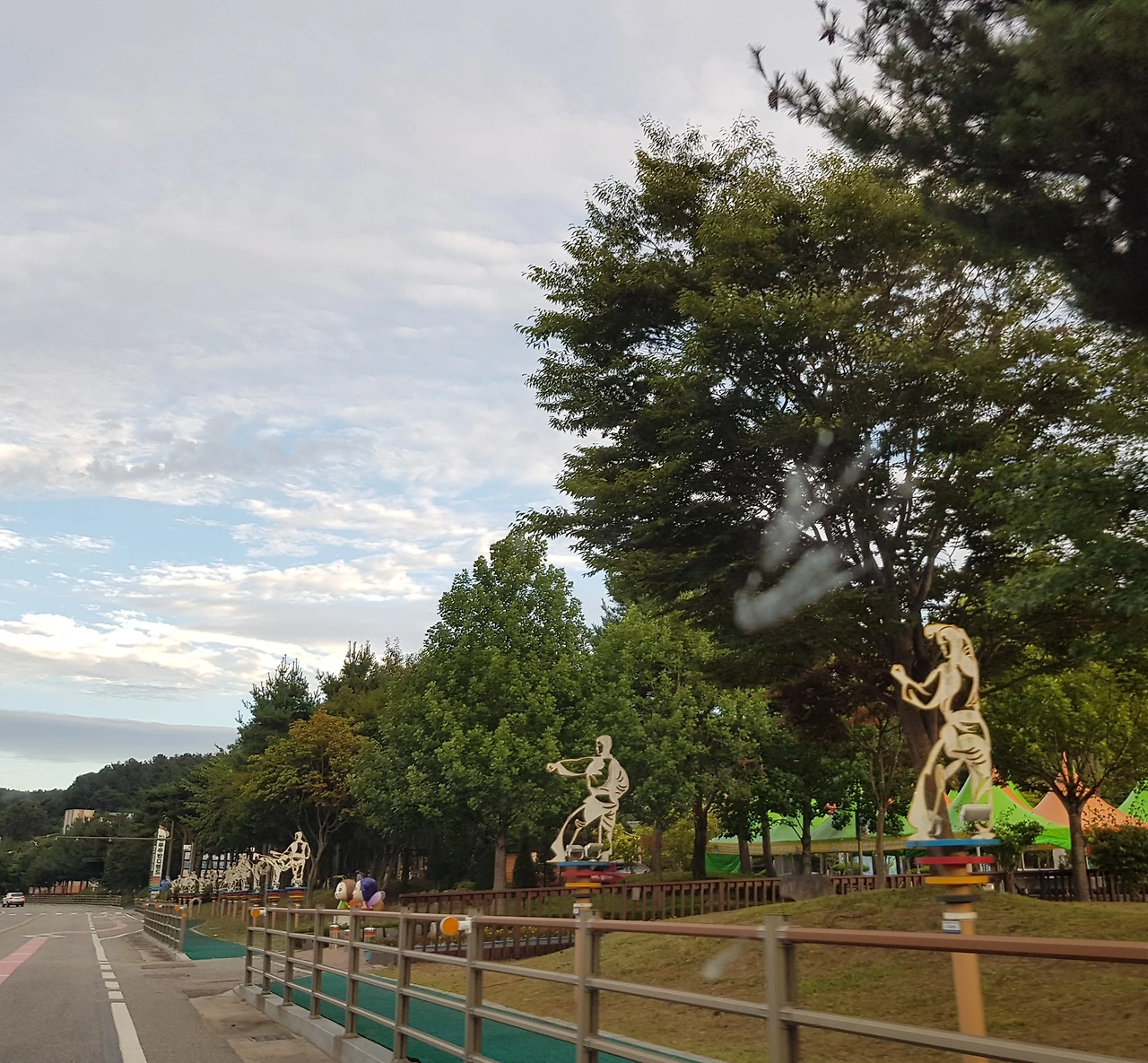 길가에 태권도의 품새 동작들이 줄지어있어 누가 봐도 태권도원 가는 길을