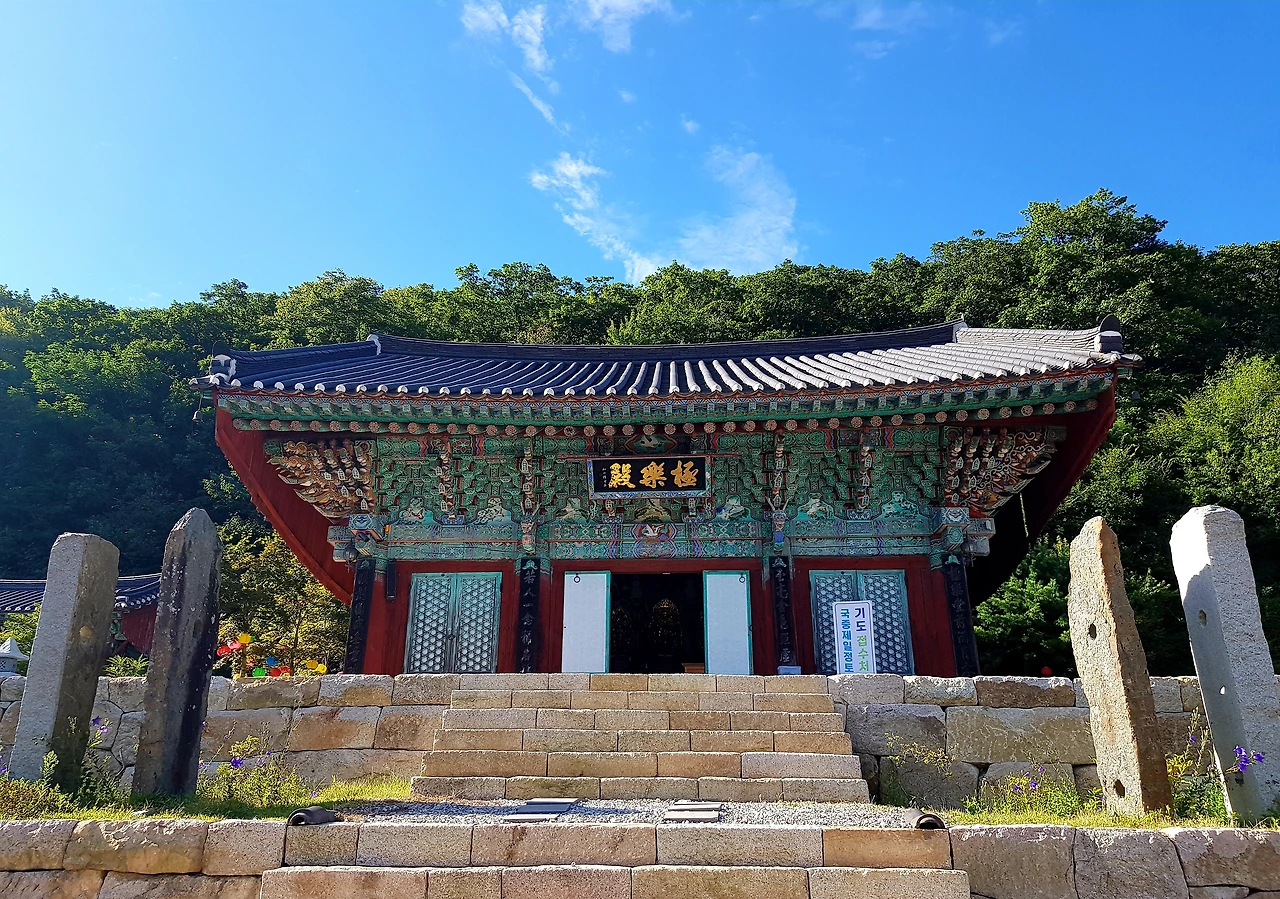 성보박물관에는 촬영을 금하고 있었기에 입구를 촬영하고 나와 극락전으로 올라가 화려하고 아름다운 보물인 탱화를 보았다