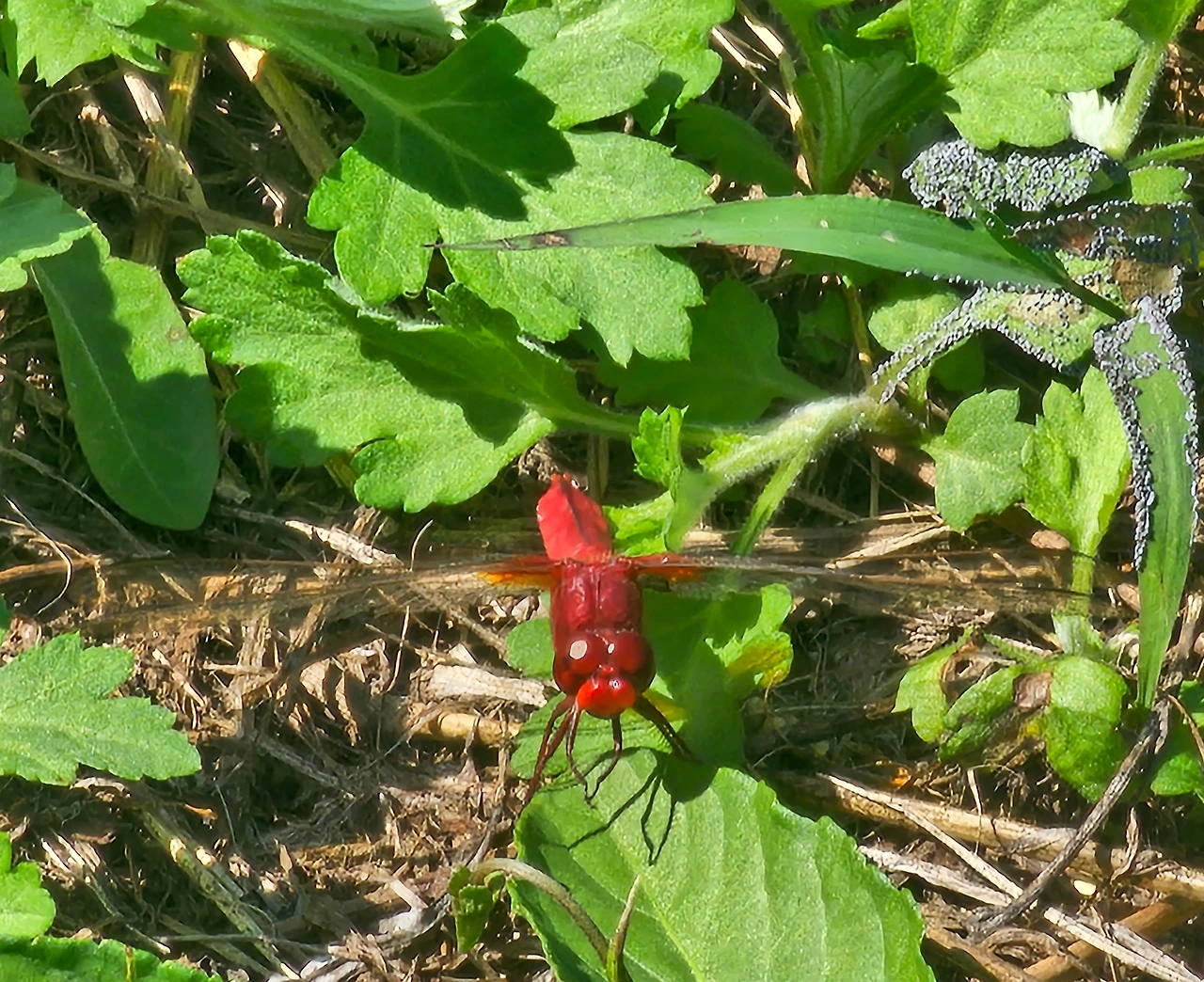 빨간 고추잠자리 가까이 풀숲에