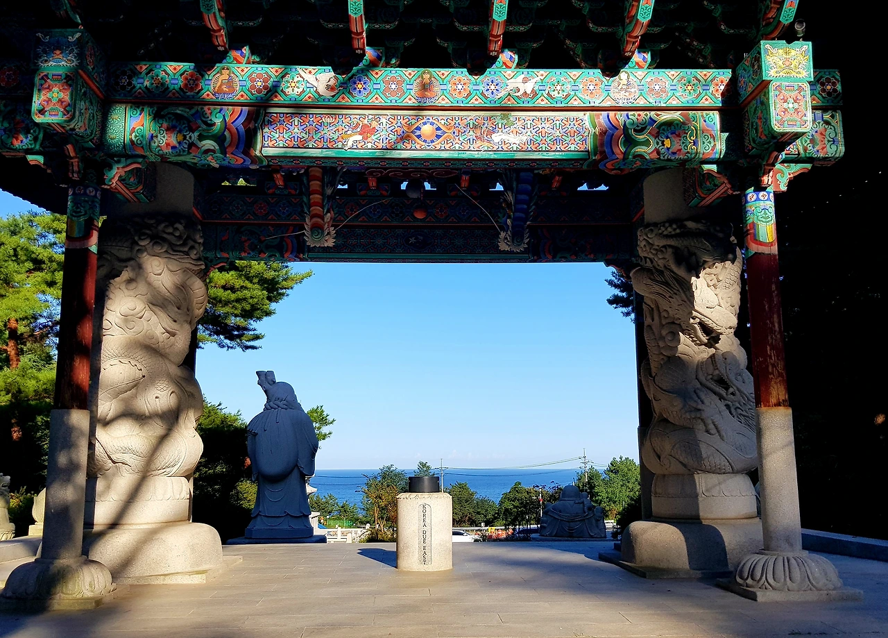 모든 건축물들이 현대적이고 역사의 흔적이 거의 없어 현대에 지었구나라며 손 안의 사전을 찾아보니 이곳의 유래는 신라 진덕여왕 때 자장율사가 창건하여 수다사 라 하였는데 그 후로 이름이 바뀌어 가며 유지되었고 과거를 보러 가는 선비들이 이 절에 들러 등불을 켜고 기도를 하고 과거를 보면 좋은 결과가 있다 하여 등명사 라도 했지만 임진왜란때 강릉의 모든 사찰이 다 소실되었다고도 하는데 확실한 기록은 없고 무슨 이유로인지 소실되어 500여 년 동안 사라졌다가 1950년 고경덕 스님이 작은 암자를 짓고 낙가사라 했으며
