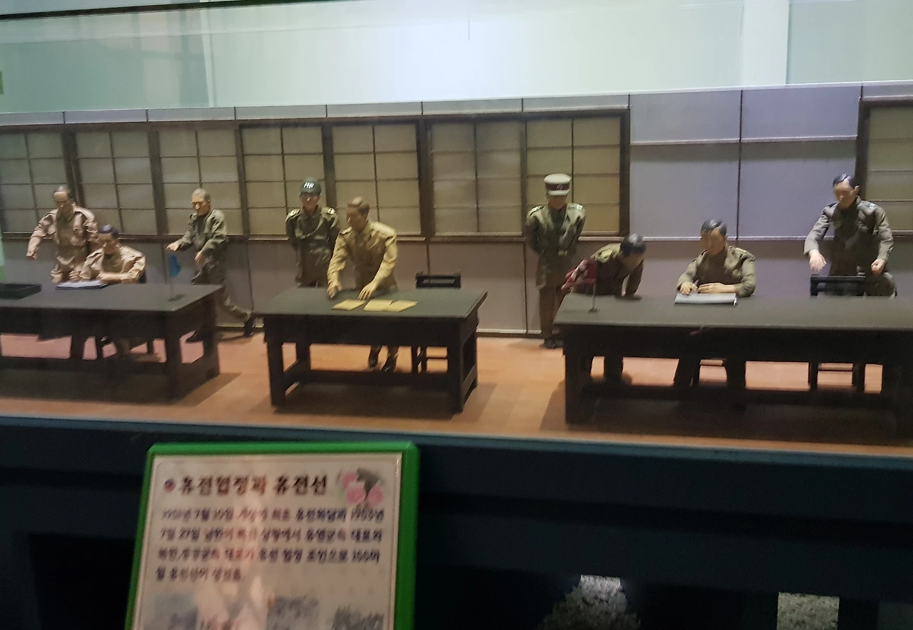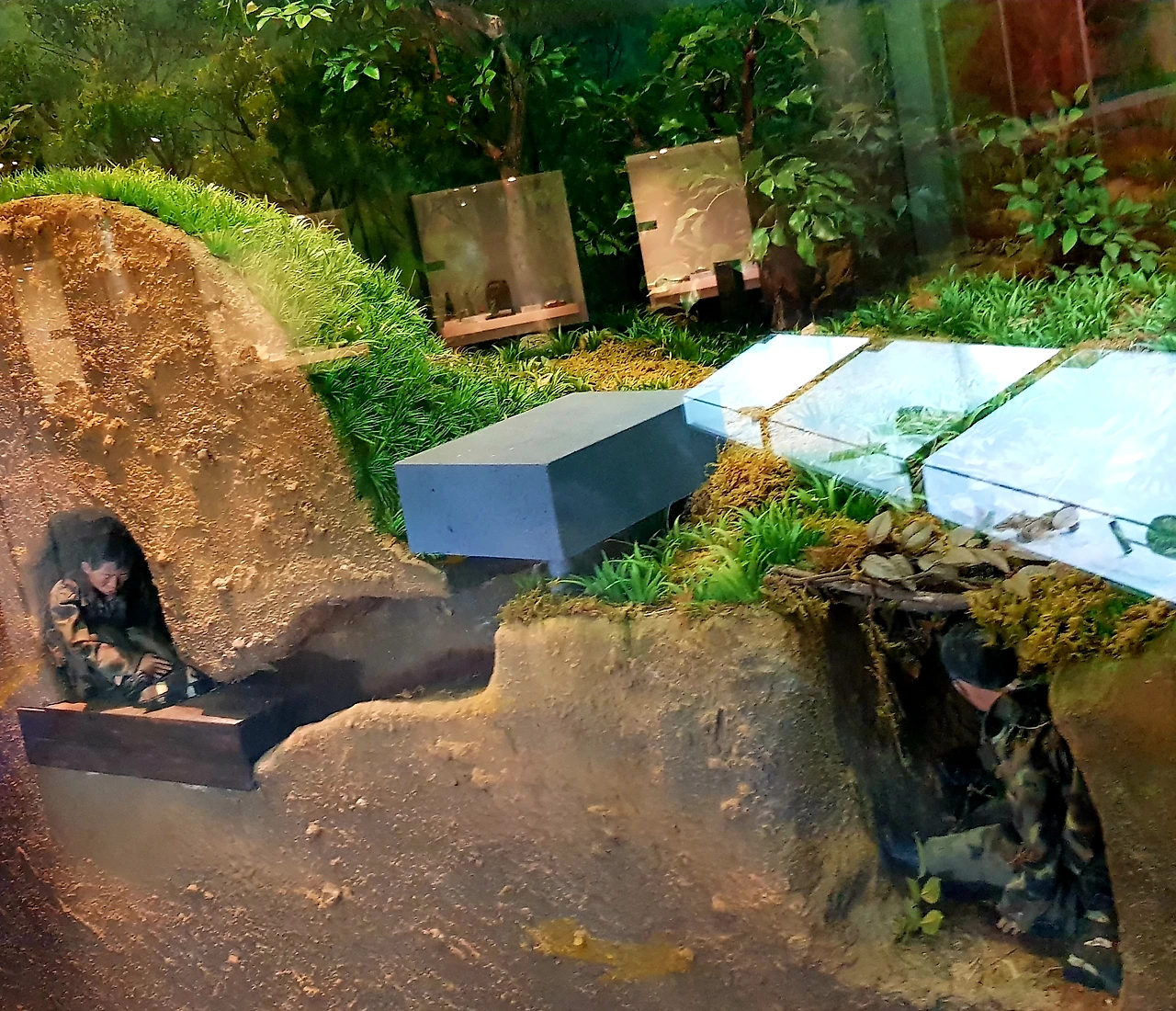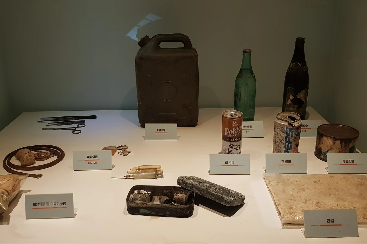 전시품들 중 간첩들이 지니고 있었던 여러 가지 살상무기들과 옷가지등 많은 것들이 전시되어 있었는데 제일 놀랐던 것은 묘지 안을 파고 은신하고 있는 모습이었다 어떻게 묘지를 파고 그 안에 숨어 있을 수 있었는지 그들도 우리와 같은 민족이어서 생각이 같을 것인데ㅡㅡ