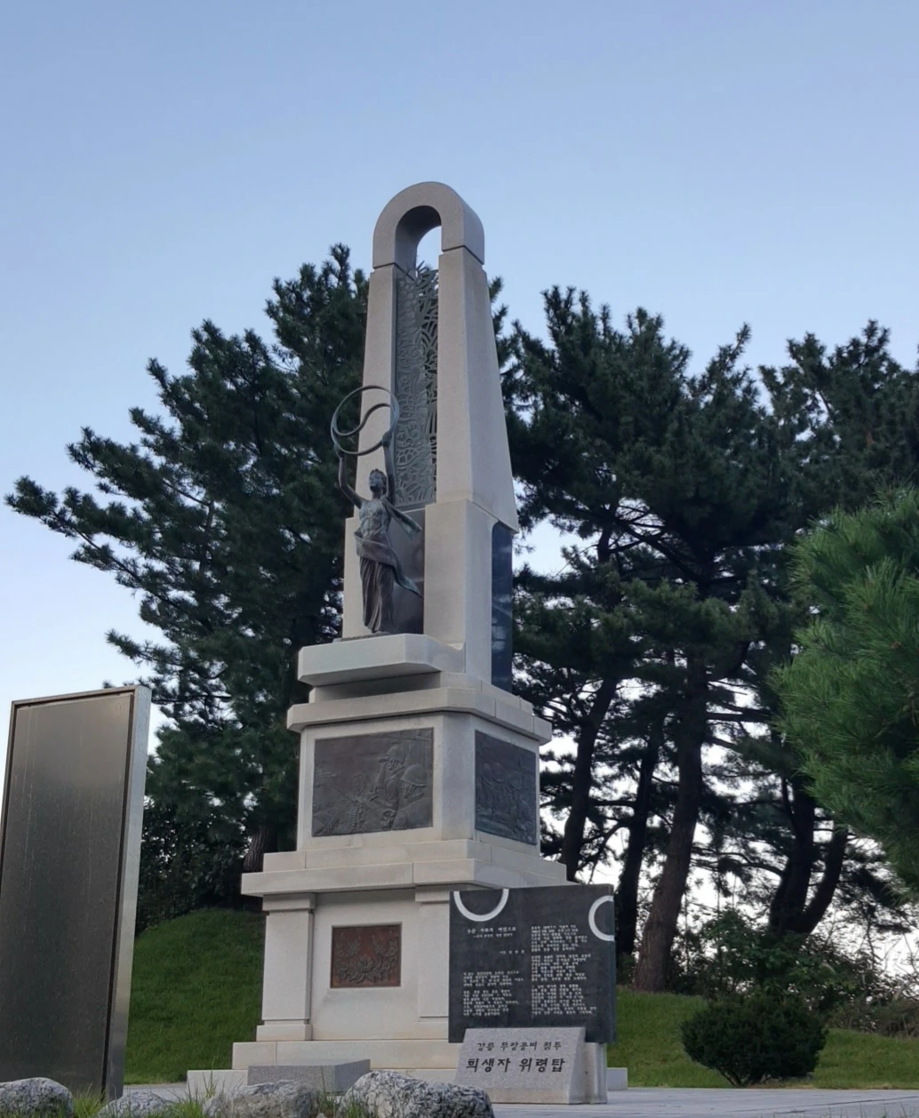 우리의 아픈 역사가 되풀이되지 않기를 빌어 보고는 공원을 내려와 맞은편의 동산 위 6.25 전쟁 학도병 기념비와 강릉 무장공비 침투