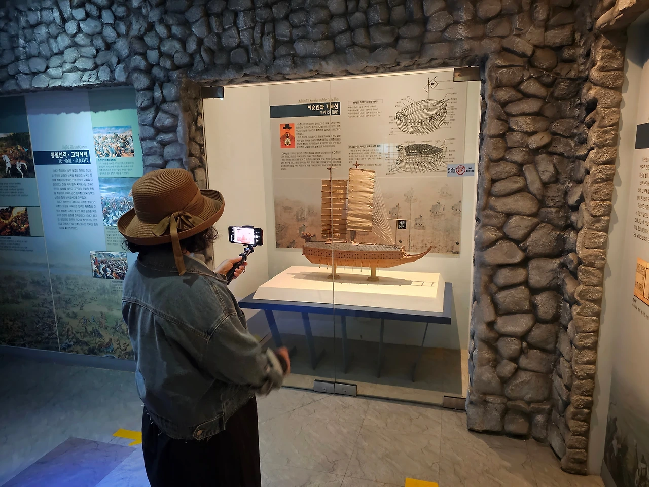 바닷가 높은 지대에 위치한 전시관에 입장하여 전시품들을 살펴본다