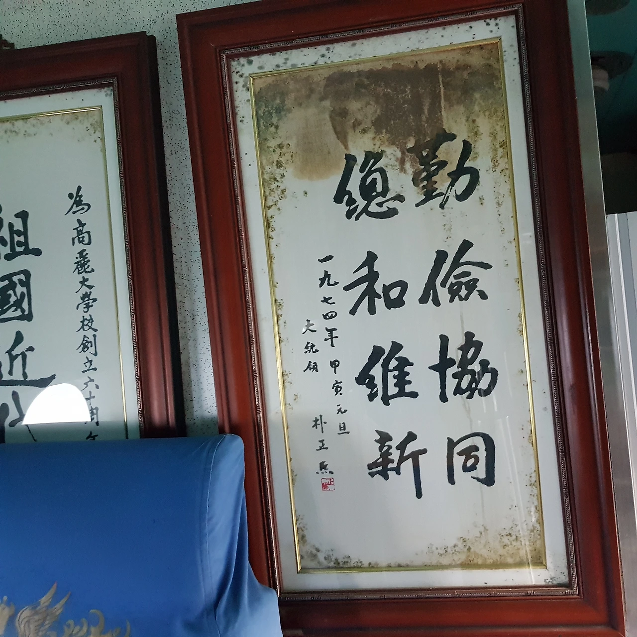 집무실 좌석에는 대통령 문양인 봉황이 새겨져 있었고 박정희 전 대통령의 친필 휘호와