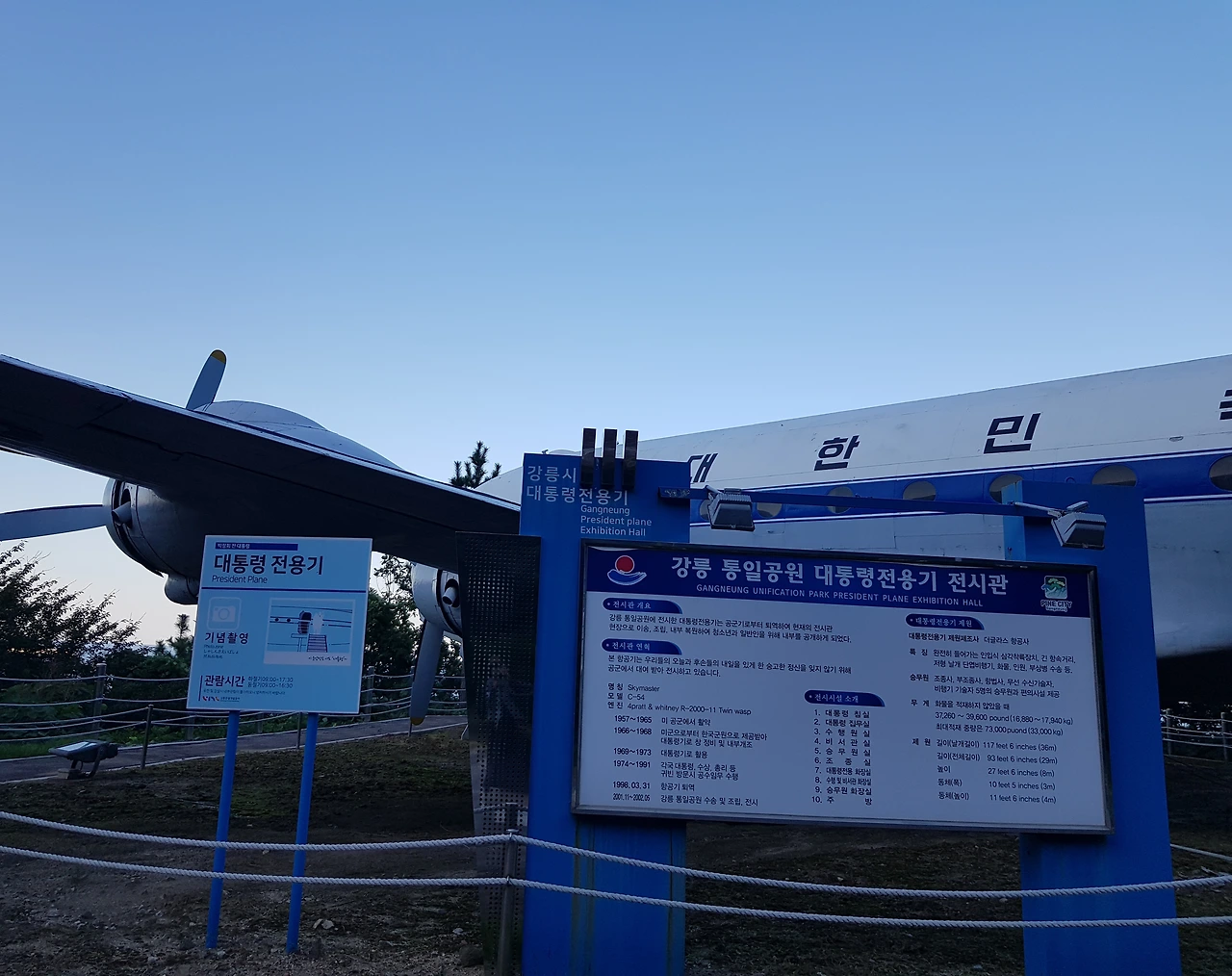 현재는 이곳 강릉 통일공원에 전시되어 많은 발길을 기다리고 있는 대통령전용기를 보며 역사의 수레바퀴를 돌려보았다