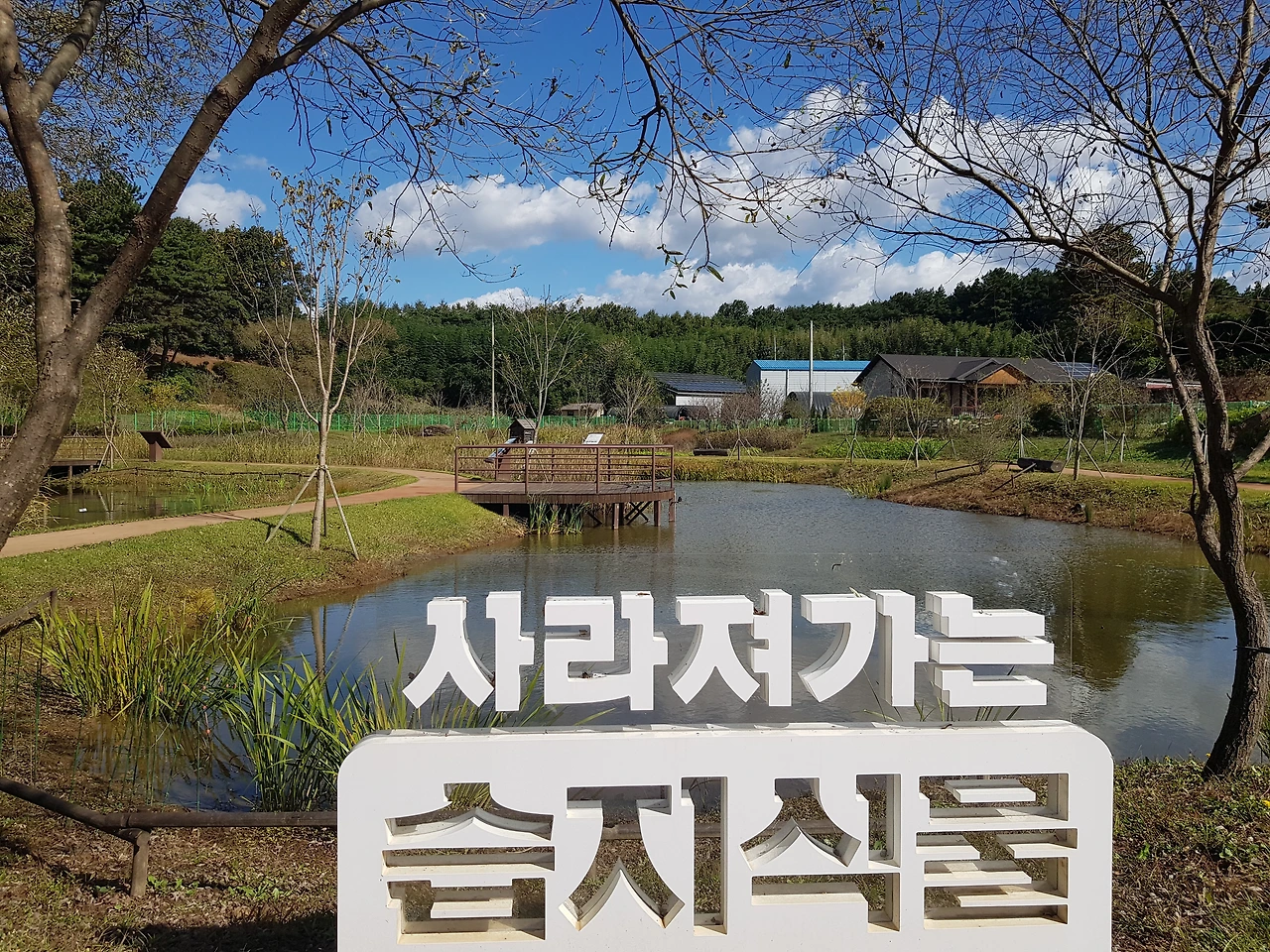 꽃도 나무도 허수아비도 식물도 연못도 바람도 하늘도 호젓한 길도 길에 떨어져 쉬고 있는 도토리도 모두가 하나가 된 생태공원