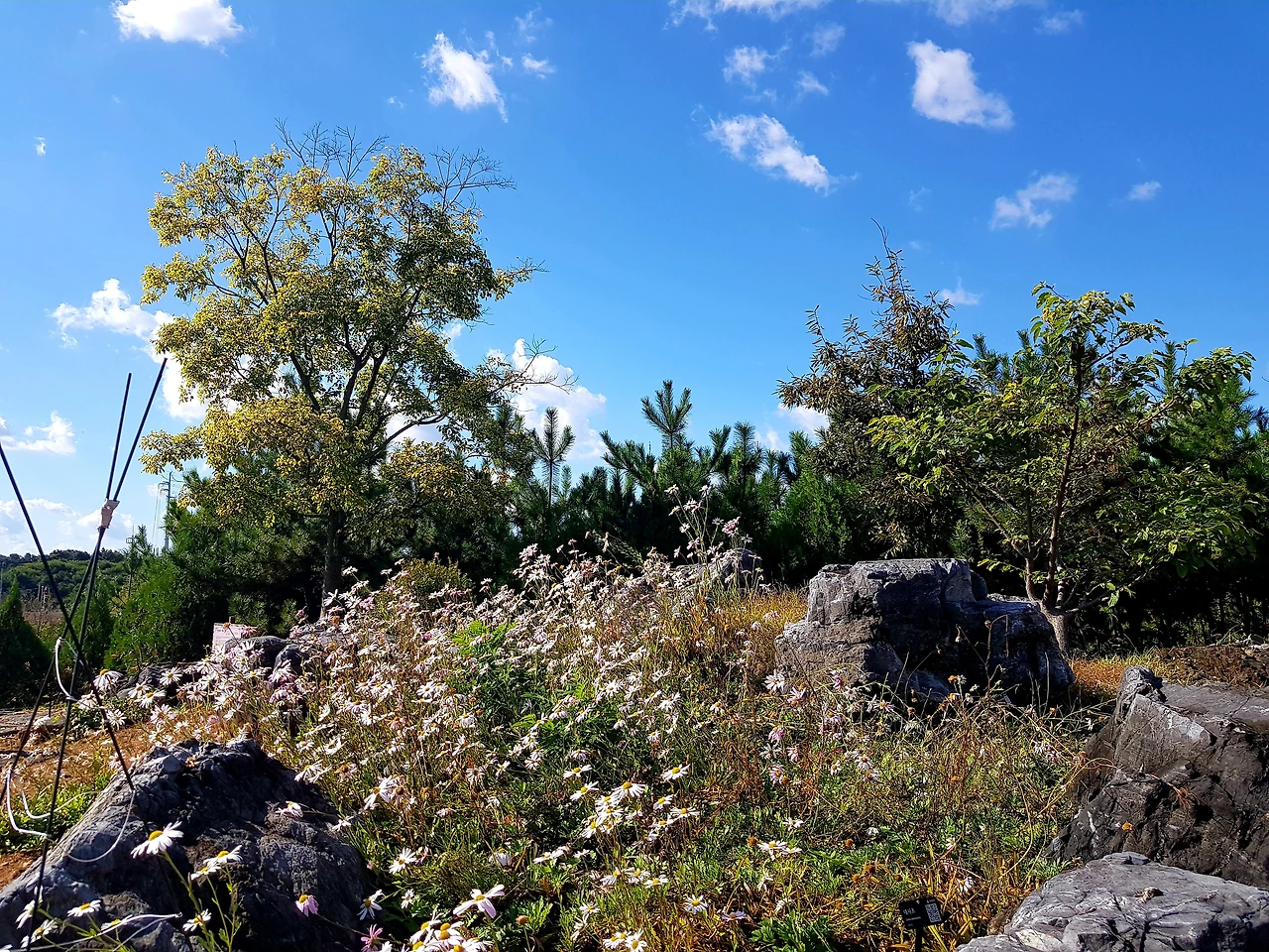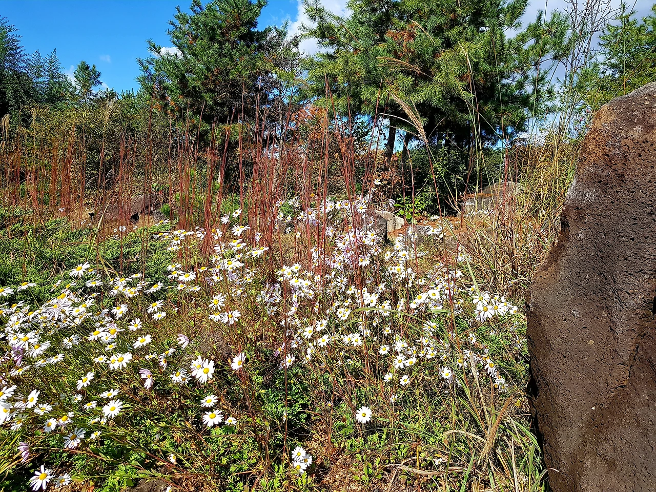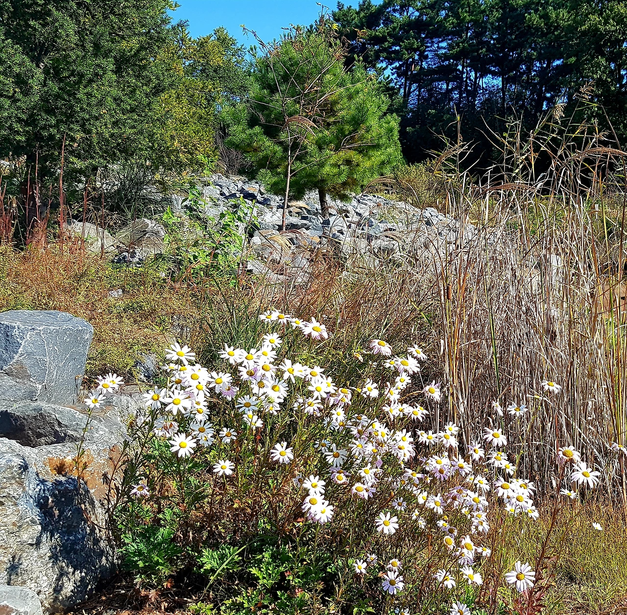 이 전시장의 주인공이라며 보여주는 사명을 완수하겠다는 듯 의연하고 암석을 둘러싸고 피어난 들꽃들이 아름답다