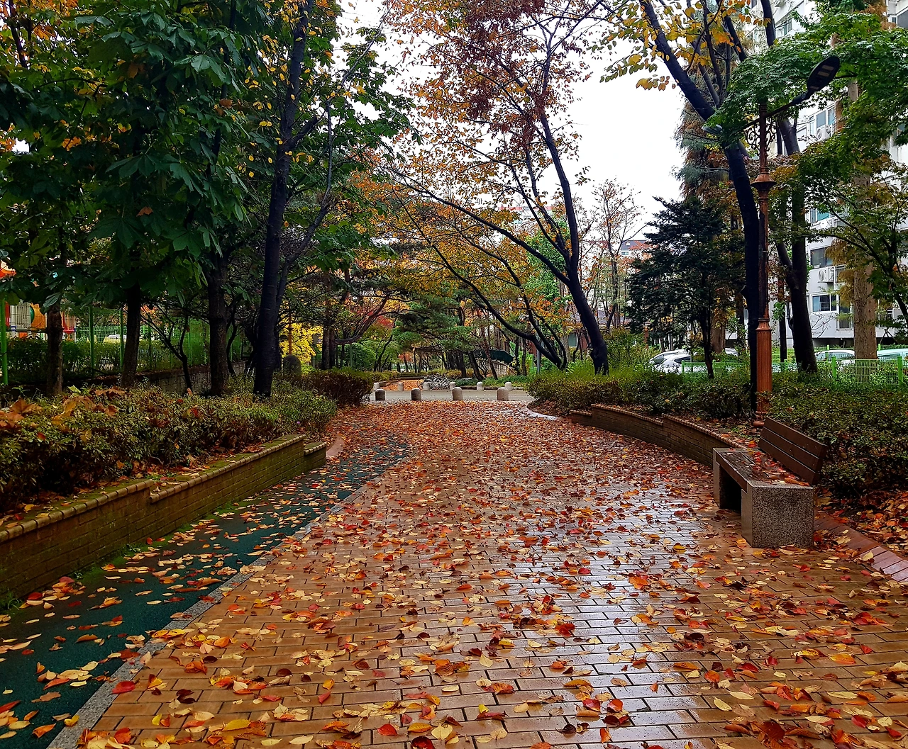 가을비의 속삭임에 떨어져 내려 낙엽