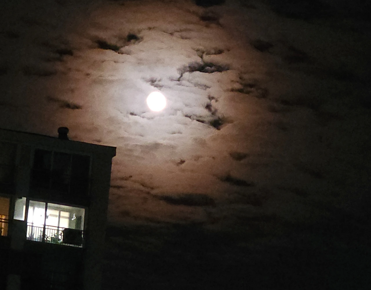 하늘 덮은 구름 뚫고 나온 둥근 달님
