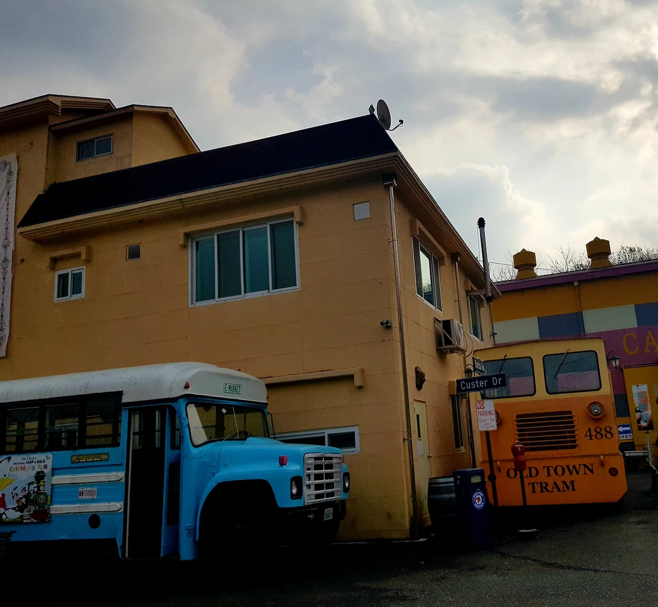 외벽이 노란색, 이 건물은 공장이었던 곳