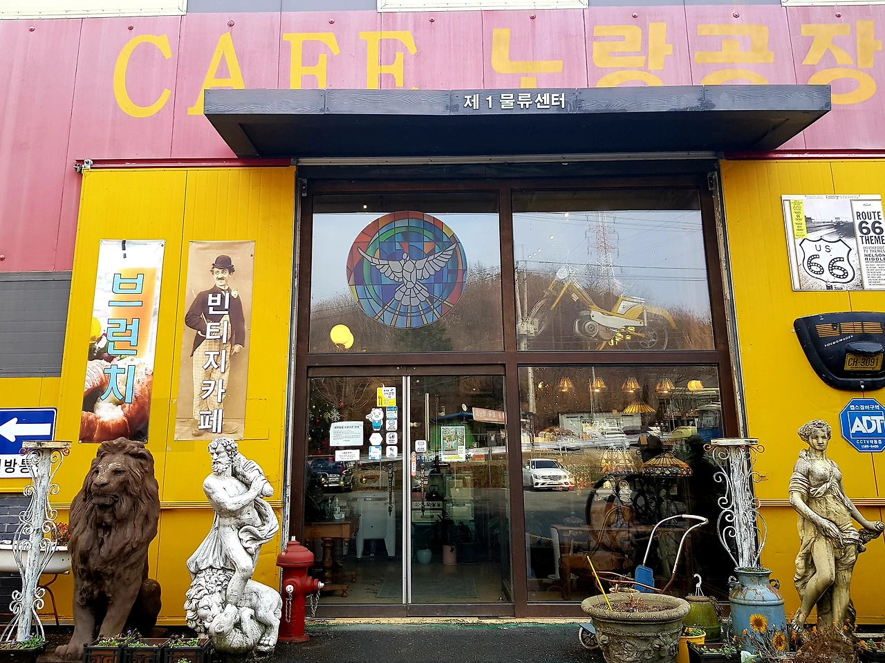 아침에 출발하여 횡성호수를 돌아보고 12시 가까이 카페노랑공장에 도착했다