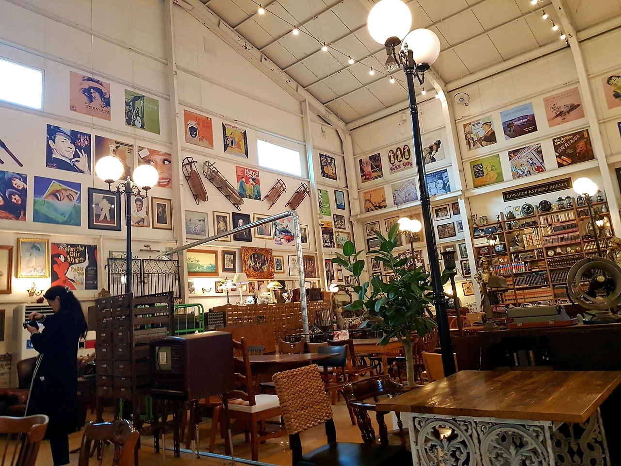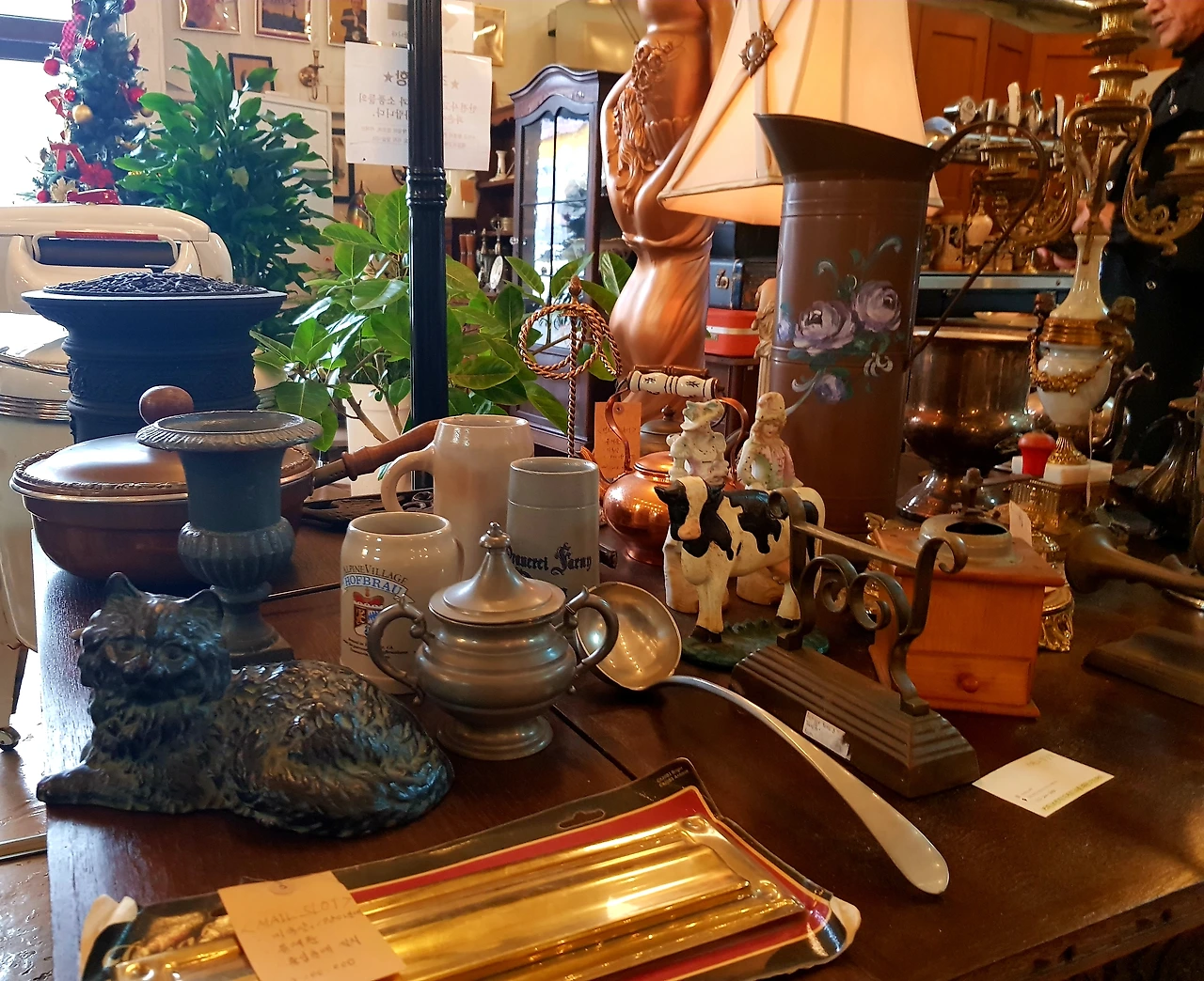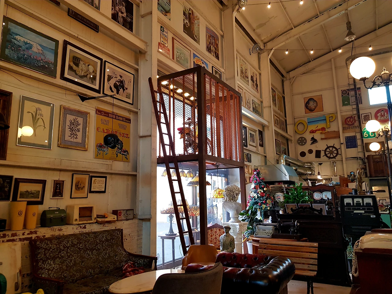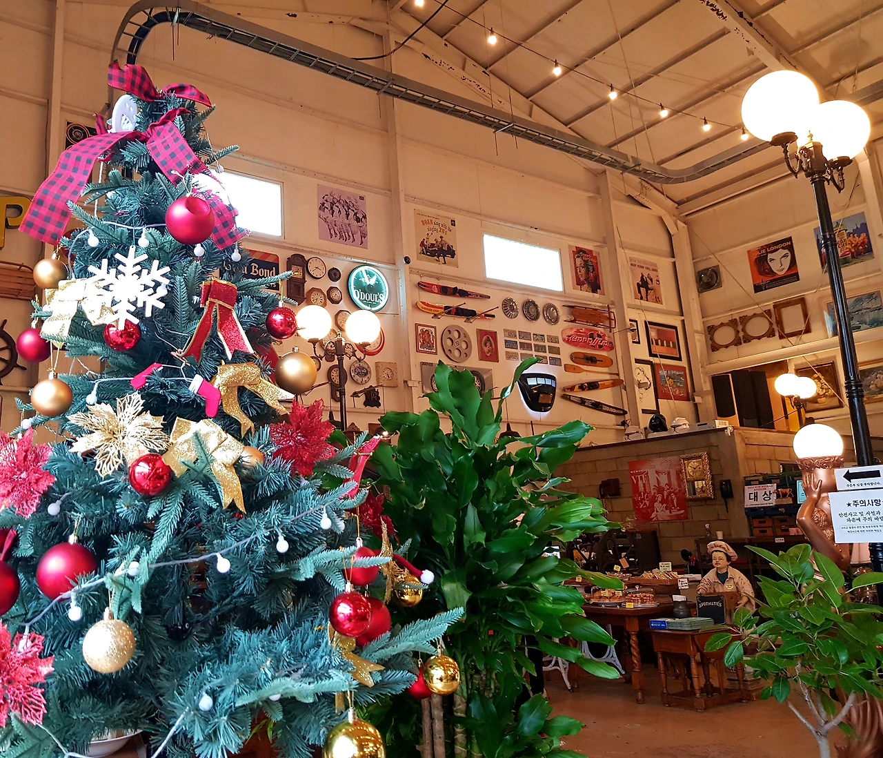 입구에 들어서자 12월의 장식 대형트리가 반기는데 트리를 따라 올려다본 높은 천장과 구조는 정말 옛 공장을 이용하여 각양각색의 물건 특히 외국의 고전들이 즐비한 것 같다