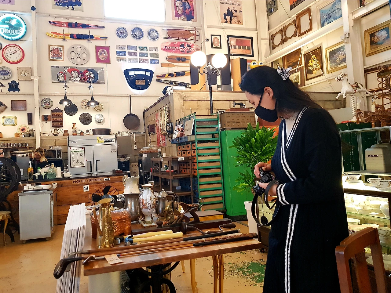 그저 쌓아놓았나? 그러고 보면 전시된 게 분명하고 전시품인 듯하면 너무 쌓여있기도 한 묘한 매력의 수많은 물건들이 쌓인 커다란 공간의 전시장을 돌아보며 시간 가는 줄 모르는 딸은 사진기를 들여대며 사진을 찍느라 여념이 없다