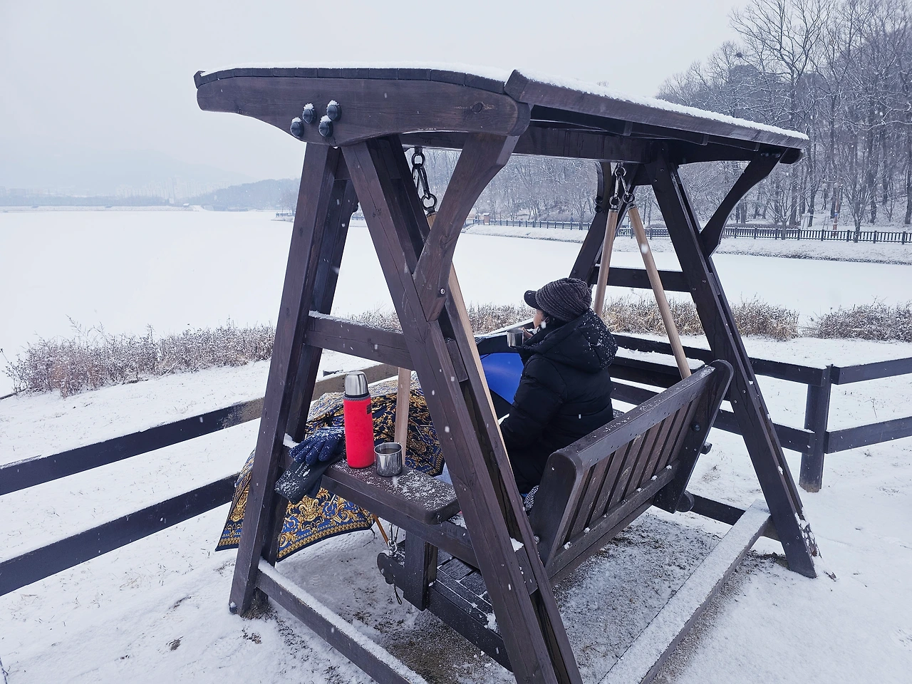 흔들 그네 터 잡은 설경사랑에 푹 빠진 청춘