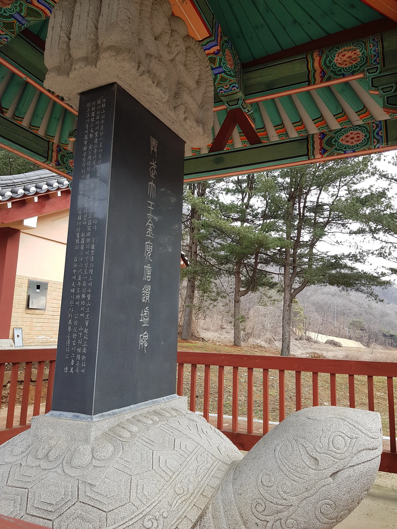 세운 지 오래지 않은 비각이 세워져 있었고 그 안에 흥무대왕 김유신 유허비가 있었고 안쪽으로 돌아가니