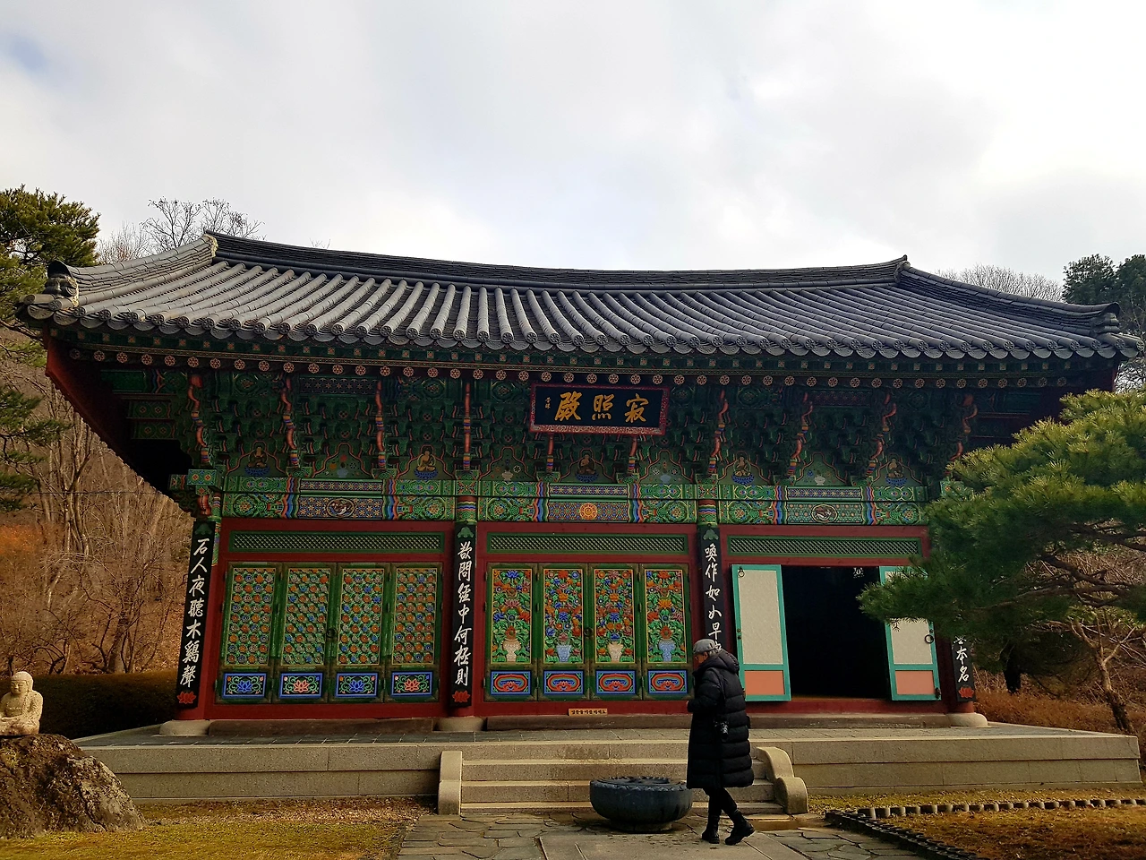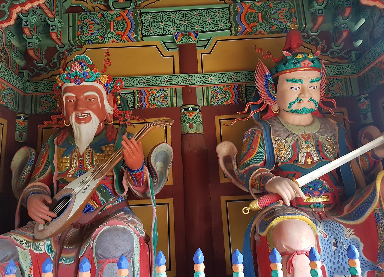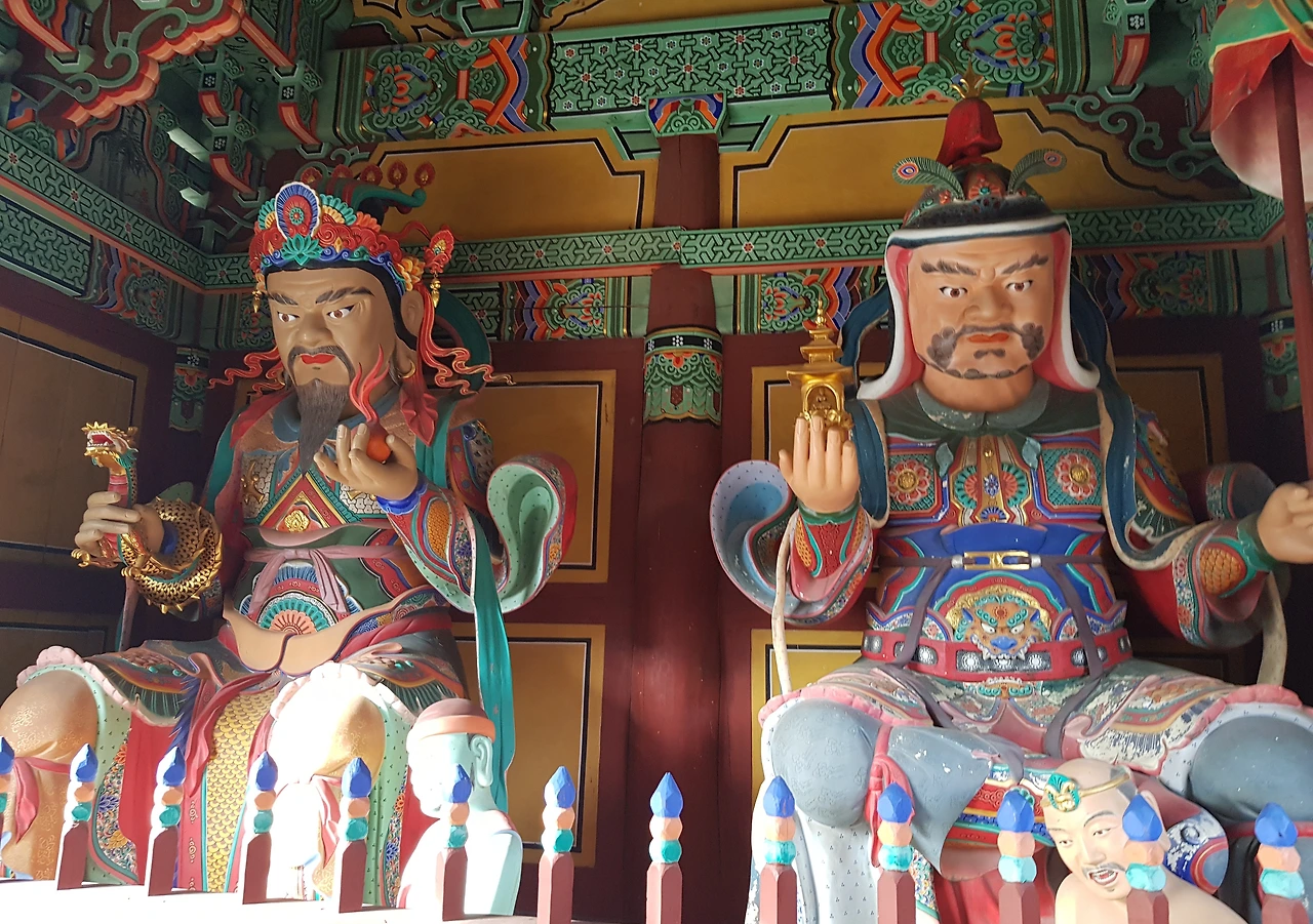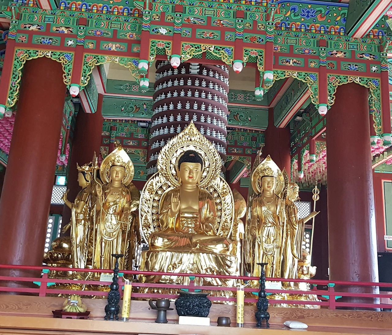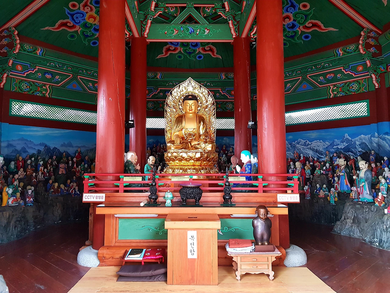 중앙에 부처를 모시고 주변에는 수많은 인간 상이 둘러서 있어서 지금껏 보아왔던 사찰과 다른 면을 보여주었다