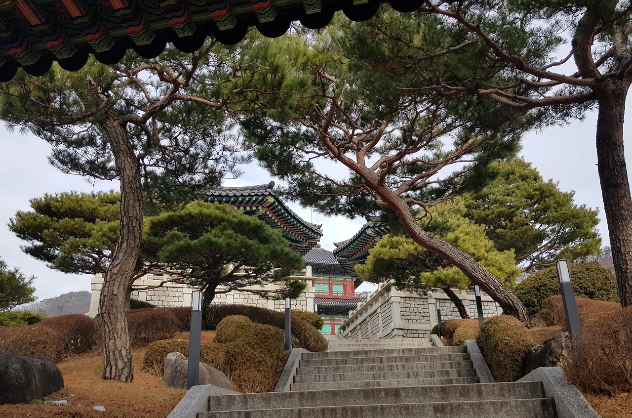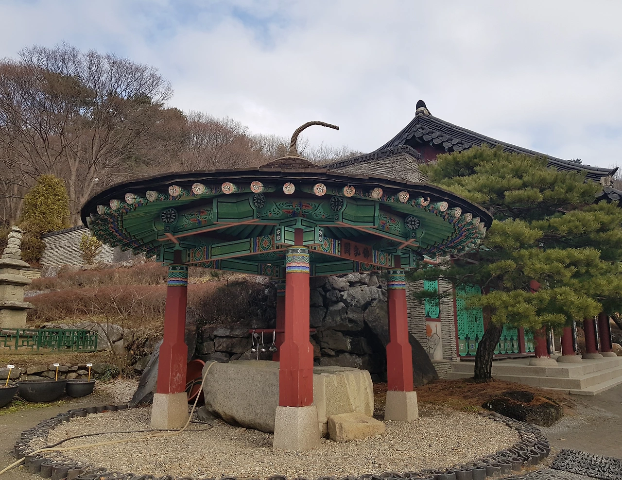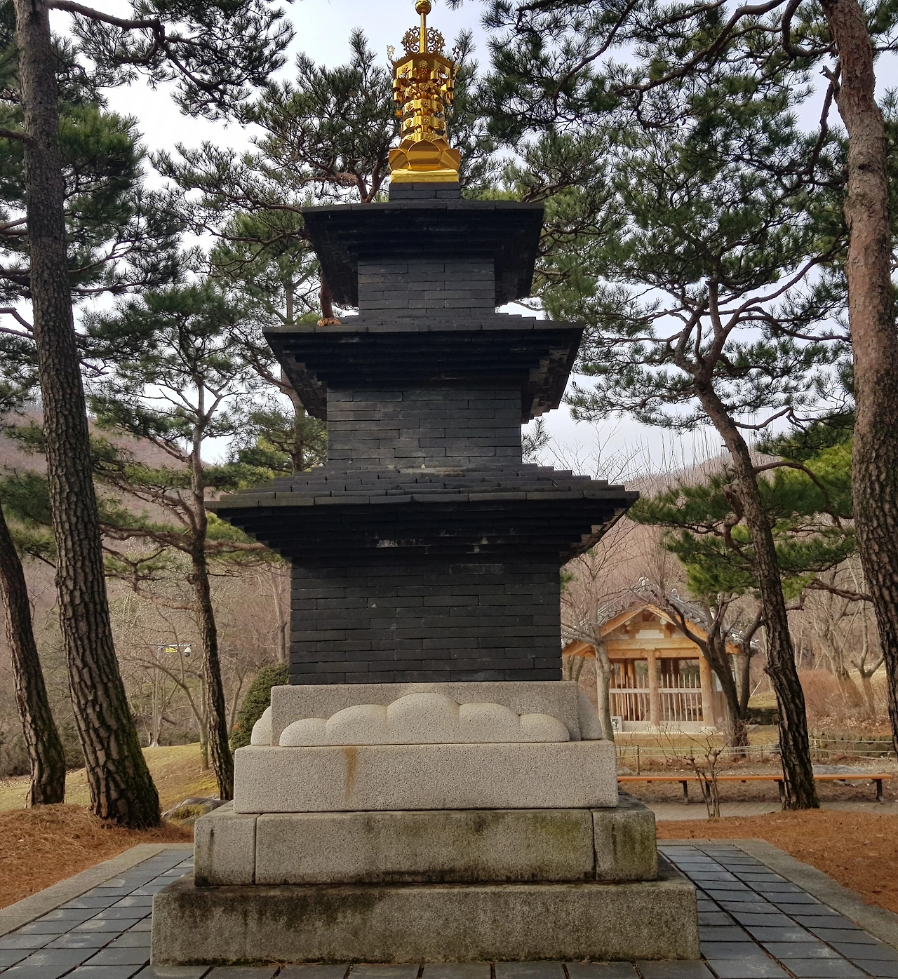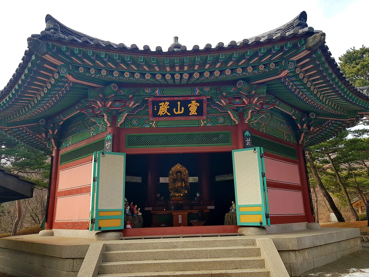 감탄을 하며 계단을 오르자 7각의 범종각과 9각의 법고각이 양옆으로 균형을 이루며 아름다움을 뽐내고 있었고 정면에는 삼국시대 목탑건축의 전통을 잇는 3층 목탑이 우뚝 서 있었다