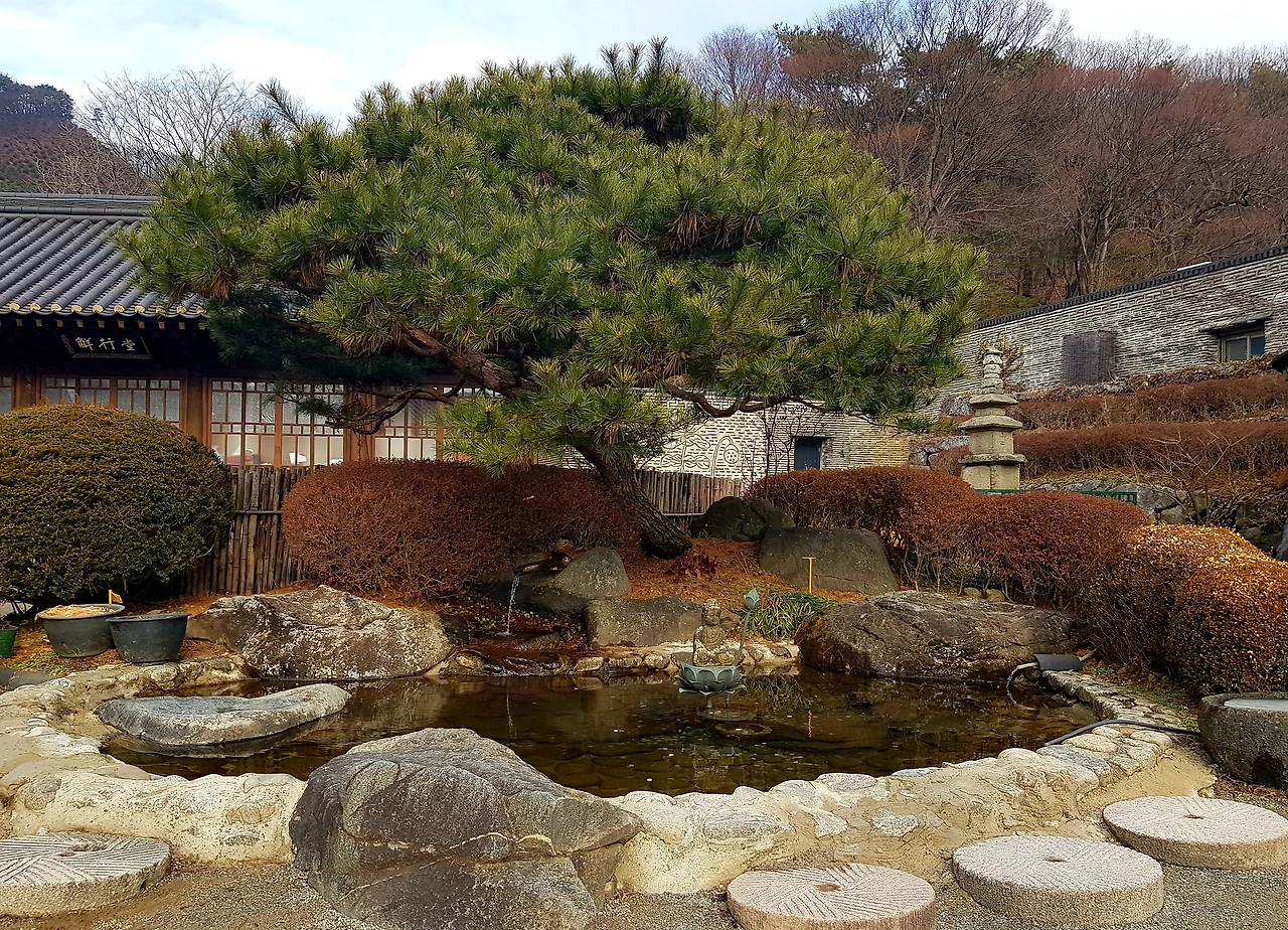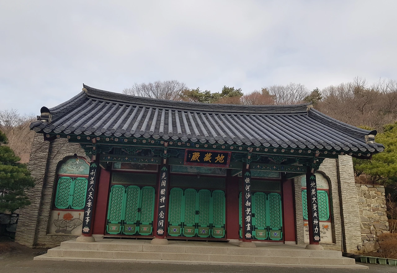 지장전 앞쪽의 작은 동산에 반가사유상의 아름다운 모습과 삼신각을 향하는 돌계단과 어우러진 나무들이 멋스러웠다