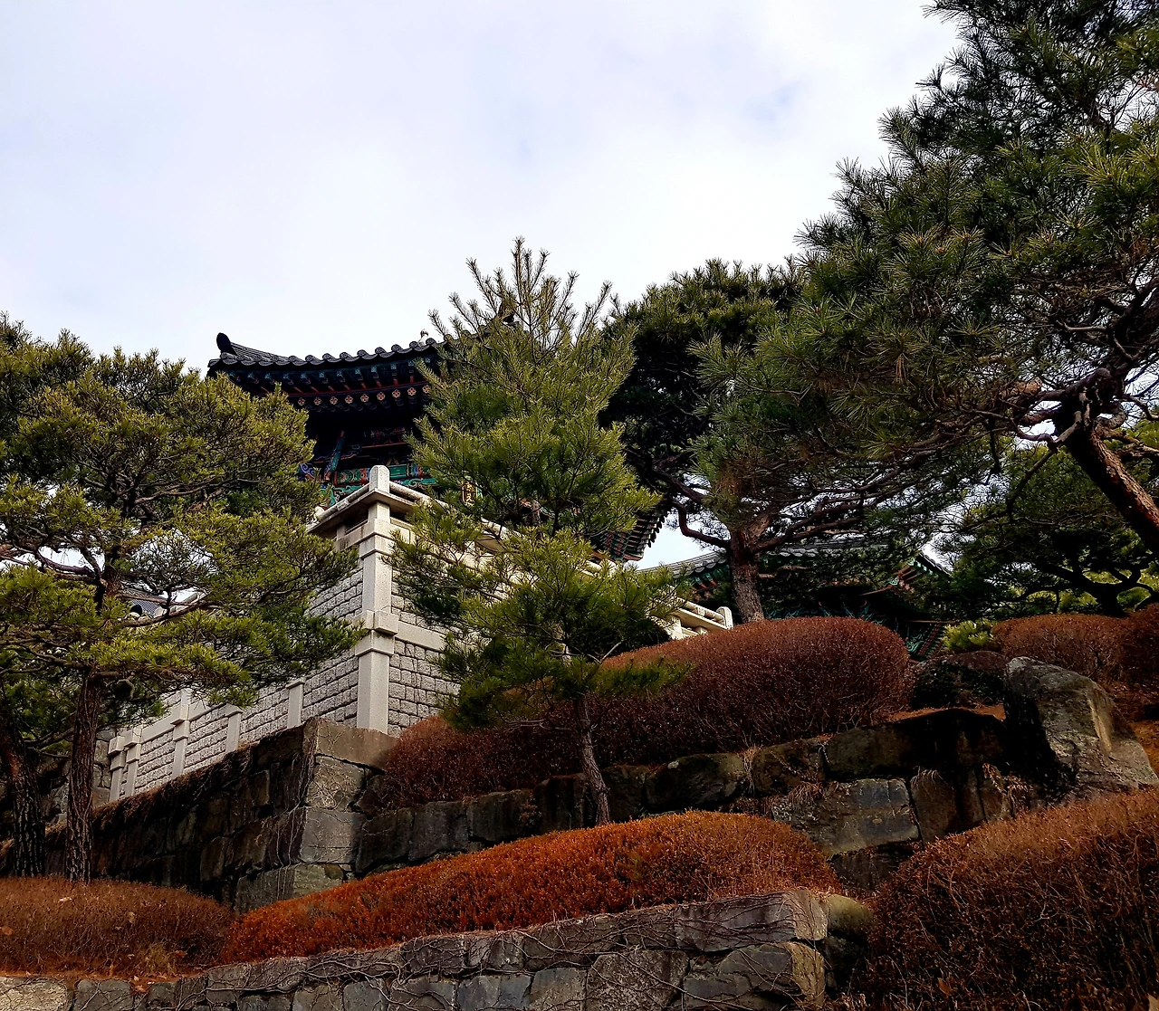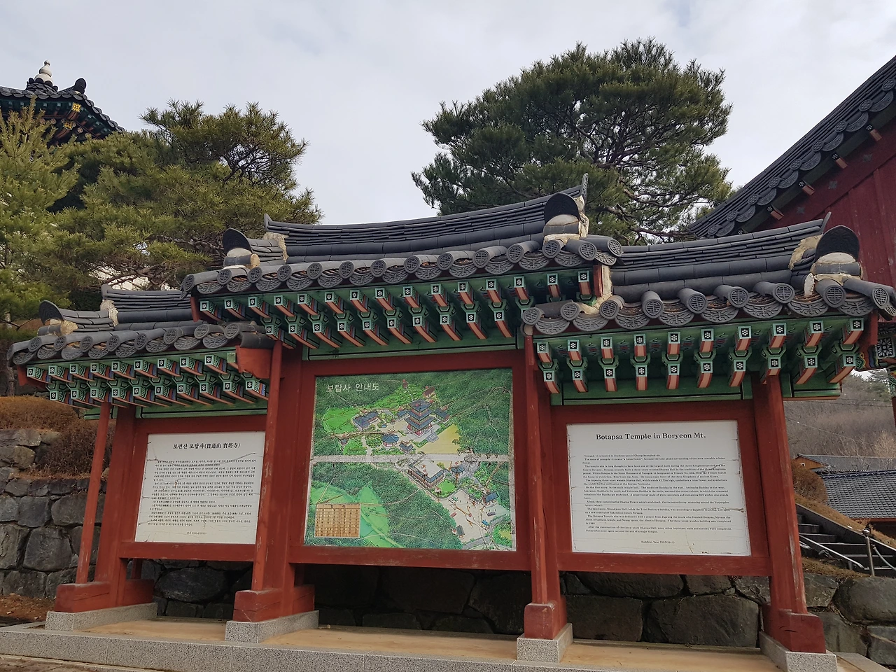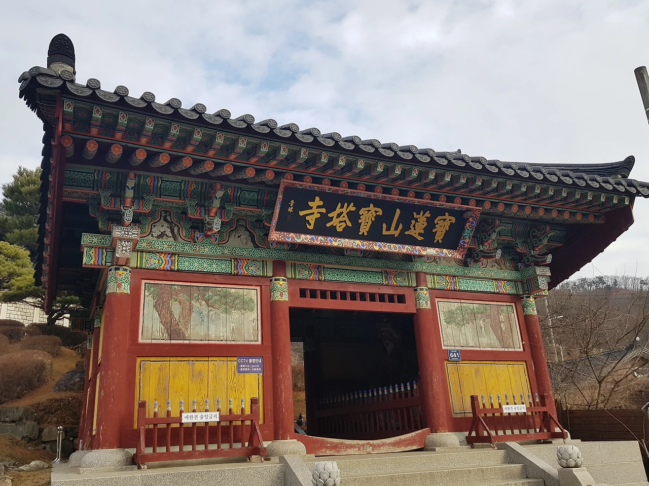 보탑사를 바라보니 밖에서 보이는 사찰의 모습이 아름답게 느껴졌는데 보련산 보탑사 라 쓰인 천왕문을 통과하여 계단을 따라 바라 보는 조화가 잘 이루어진 아름다운 풍경이 눈에 들어왔다