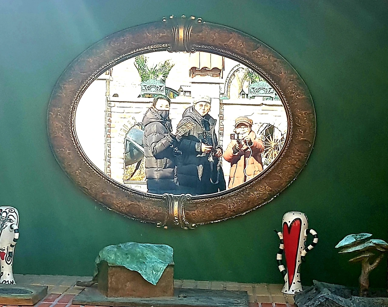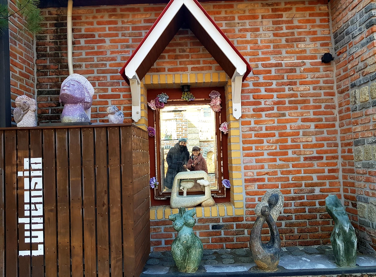 Art &Toy Gallery는 입구 쪽 벽면에도 멋진 작품들이 전시되어 있었는데 멋지게 꾸민 벽면에 거울이 들어가 있어 그 앞에서 사진을