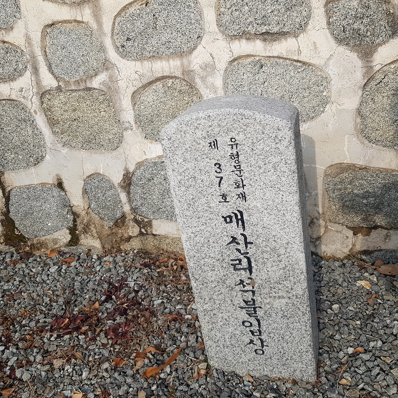매산리 석불입상 이름표의 방향을 따라 들어서니 문 앞에 안내글 석판이 있고 돌에 세긴 유형문화재 제37호 매산리 석불입상이라 세겨져 있었다