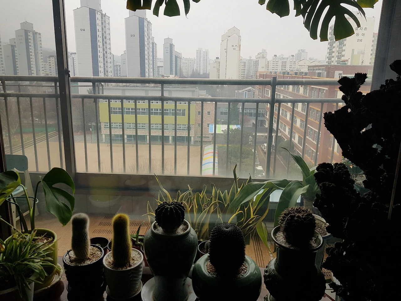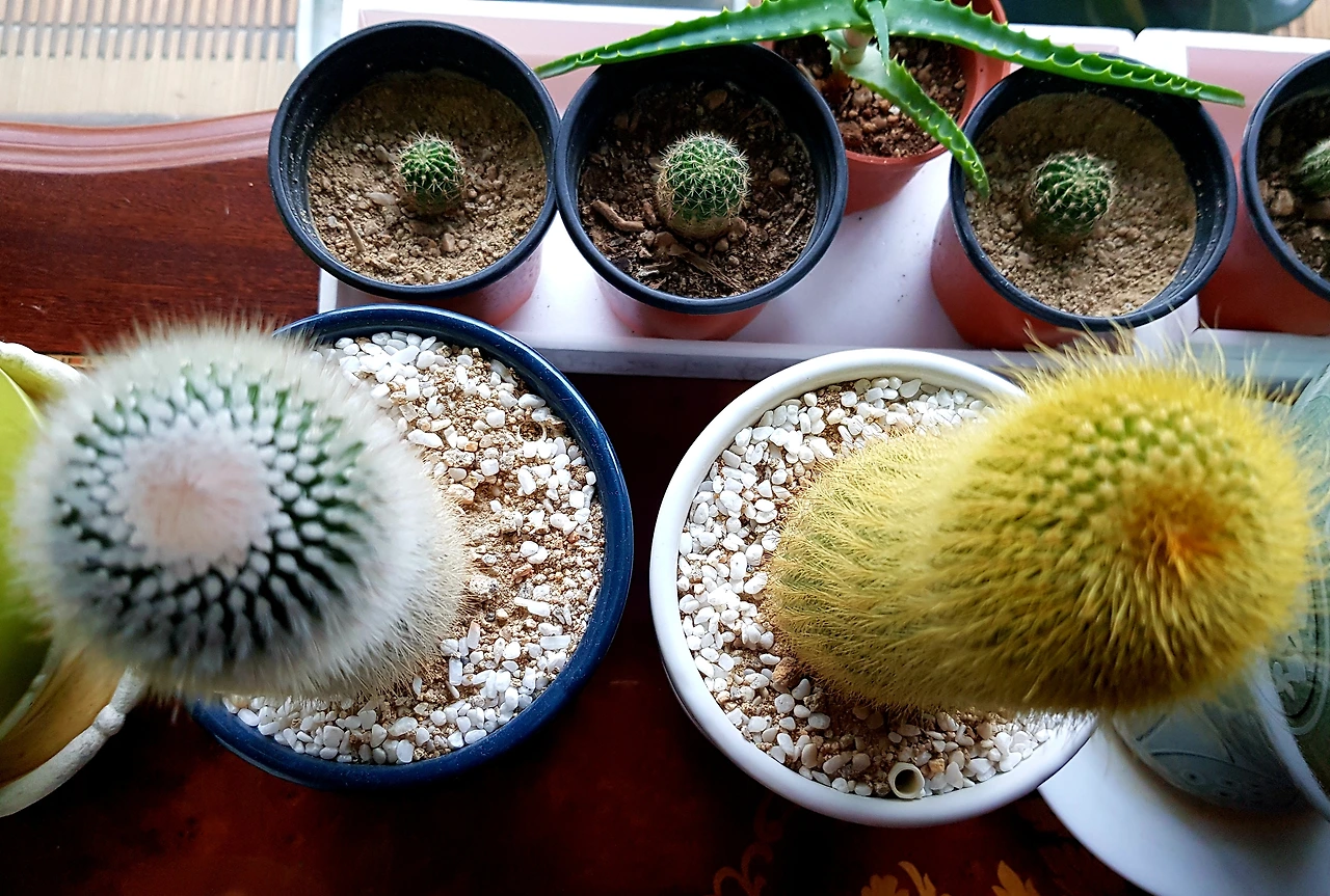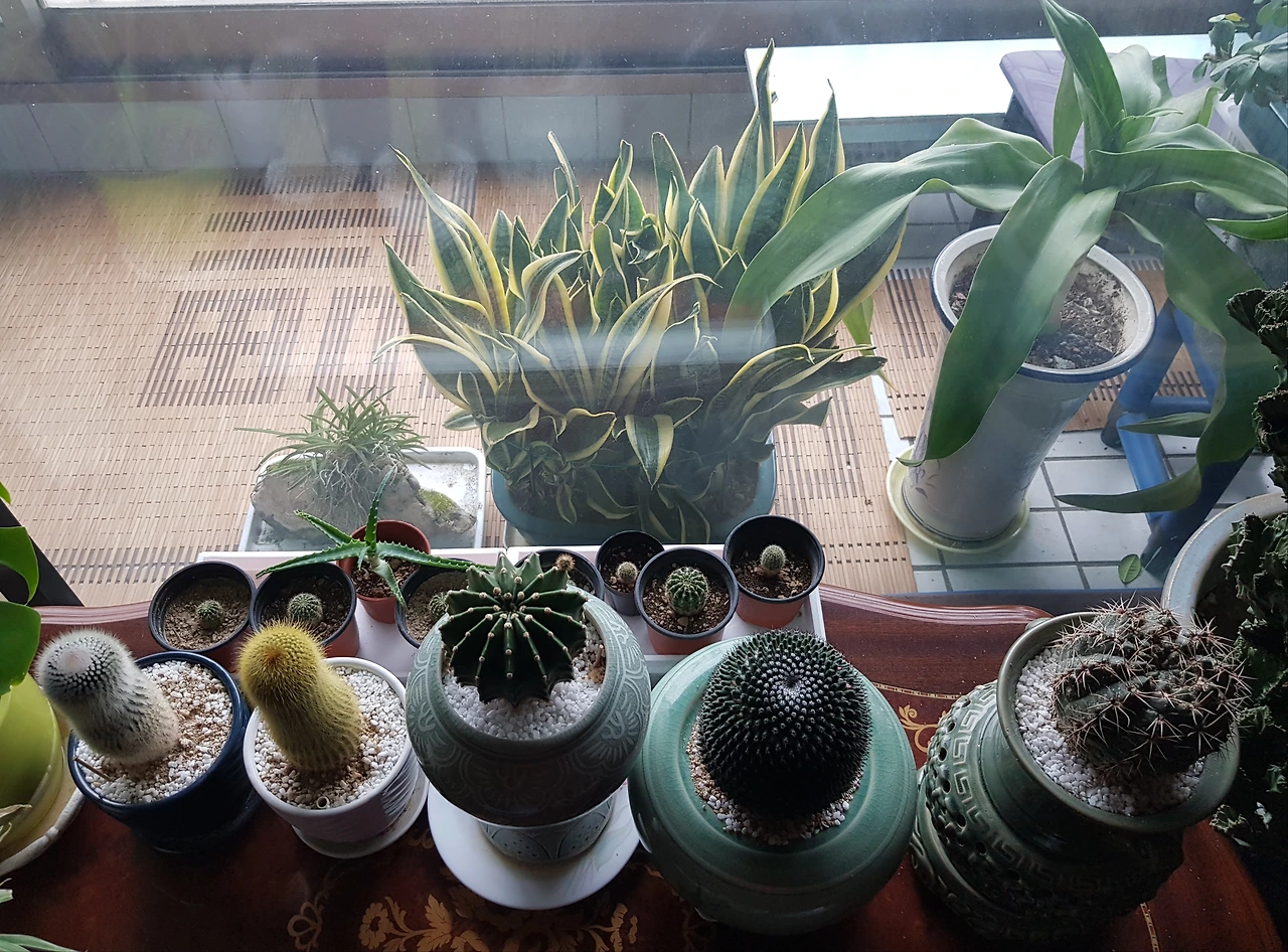 거실 안 키 작은 선인장들