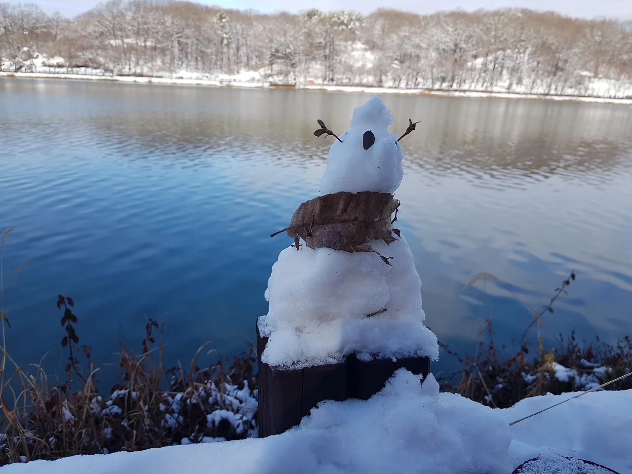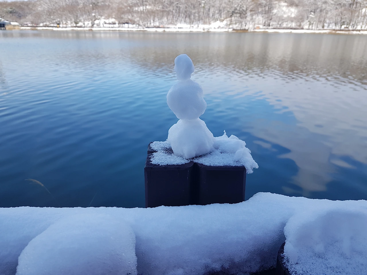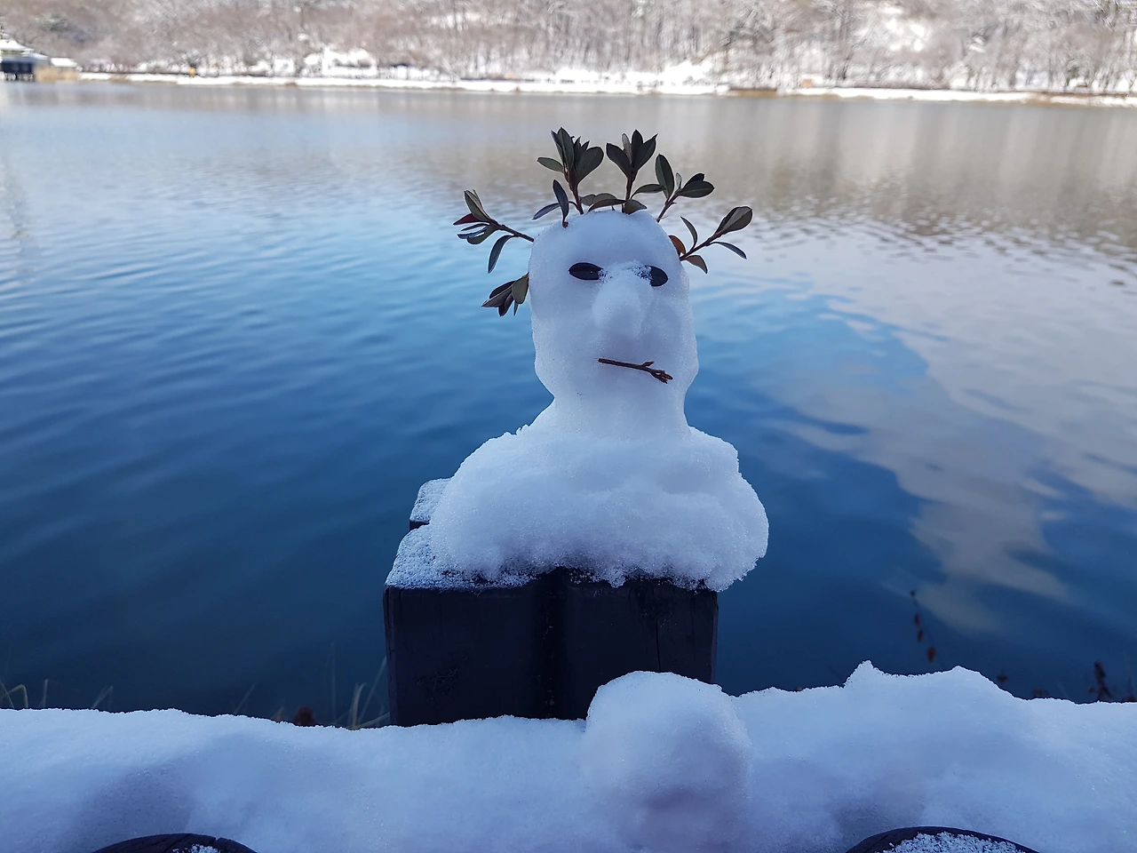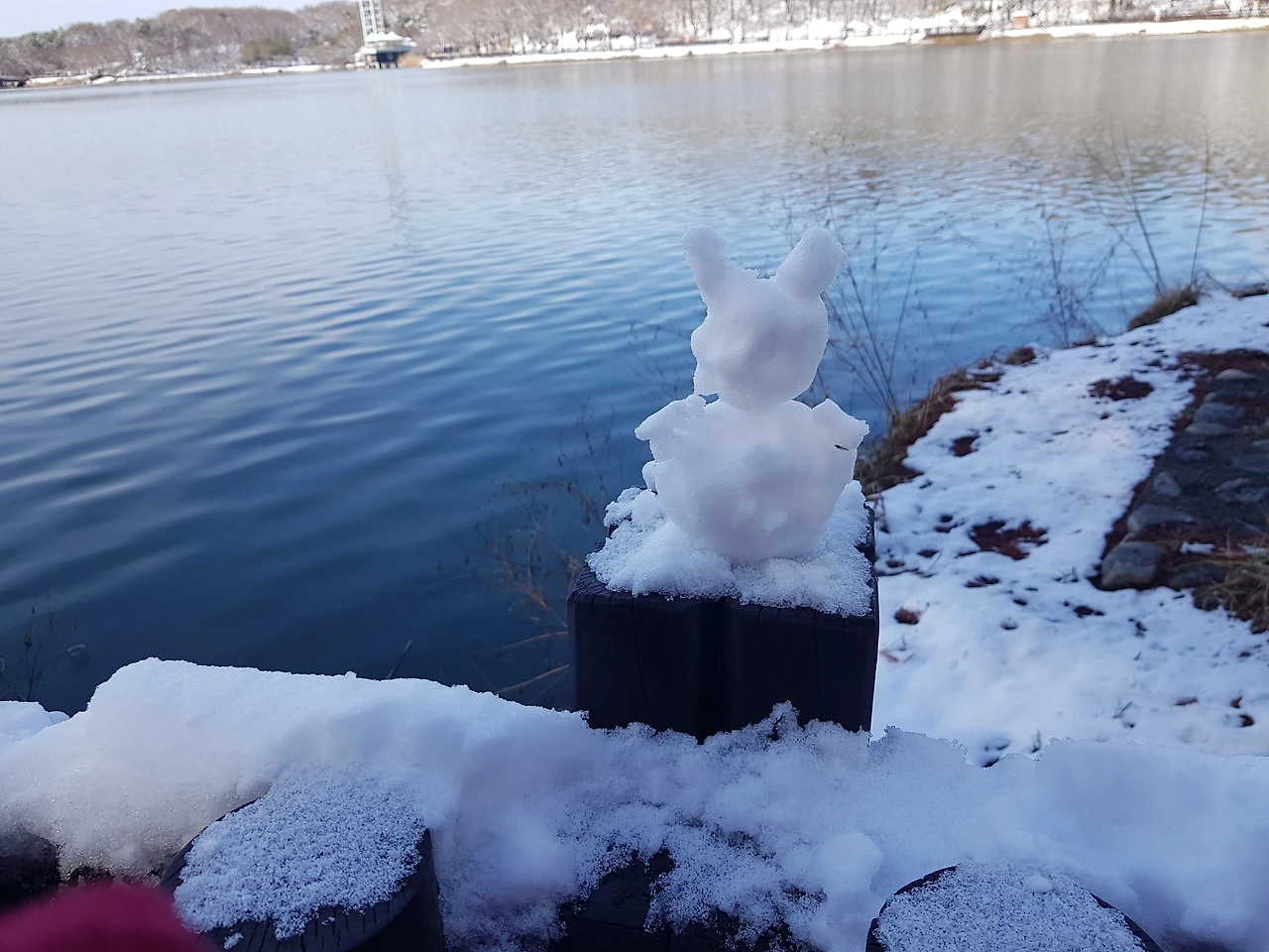 호숫가 눈인형