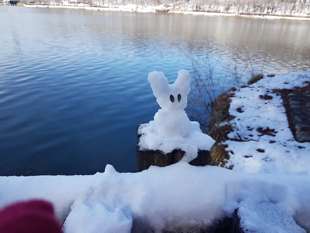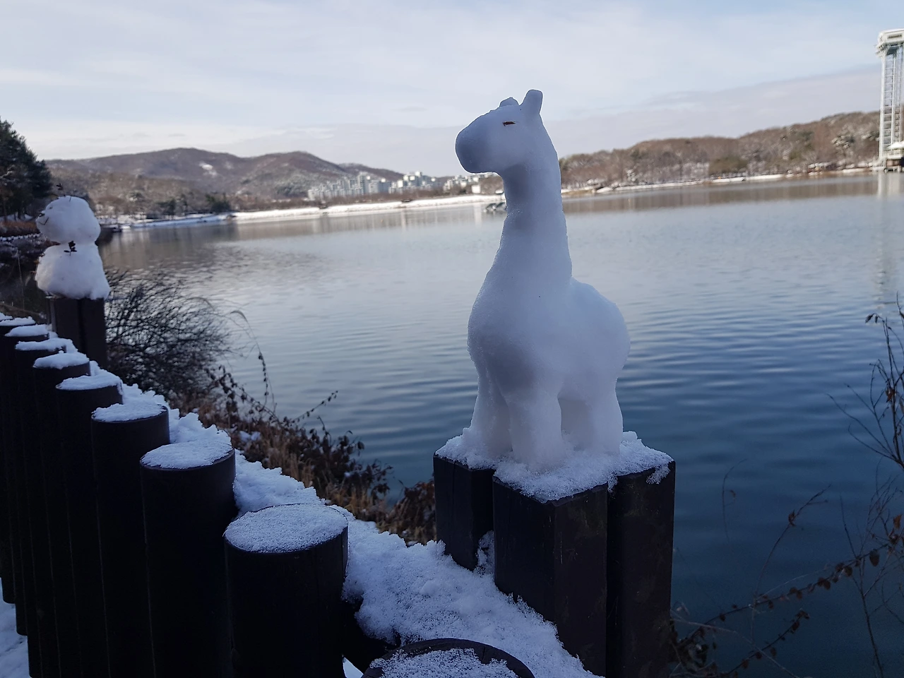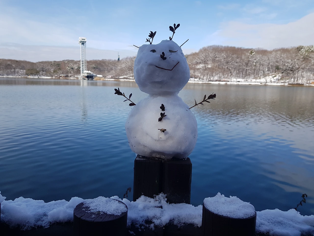 호숫가 눈인형