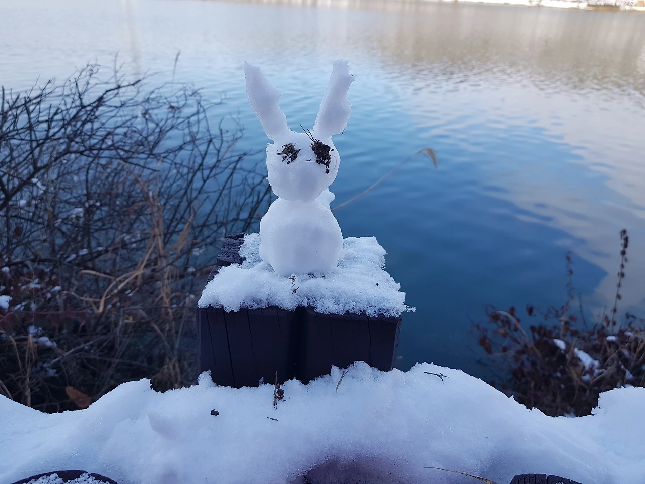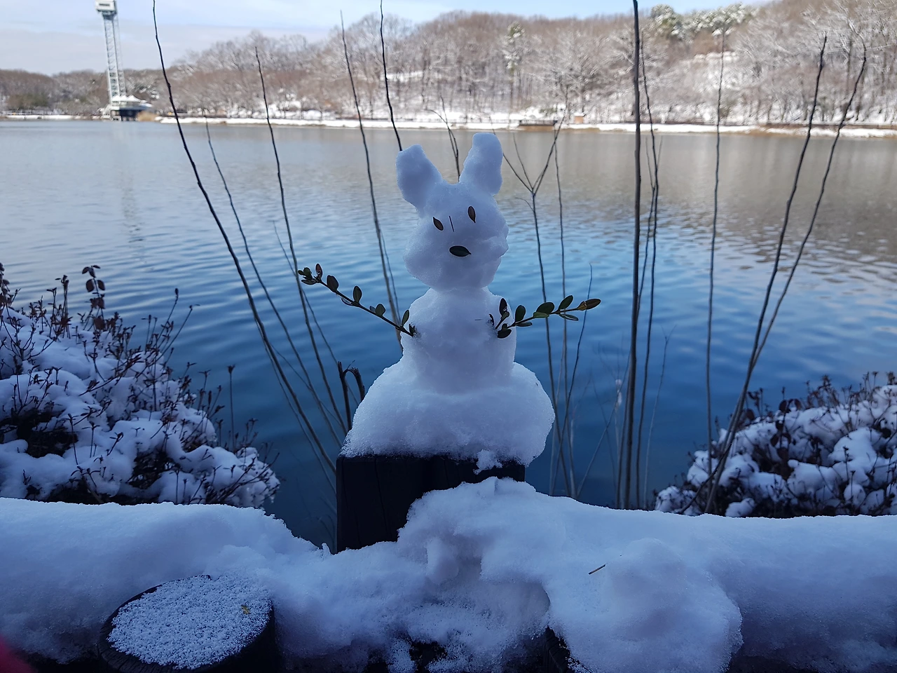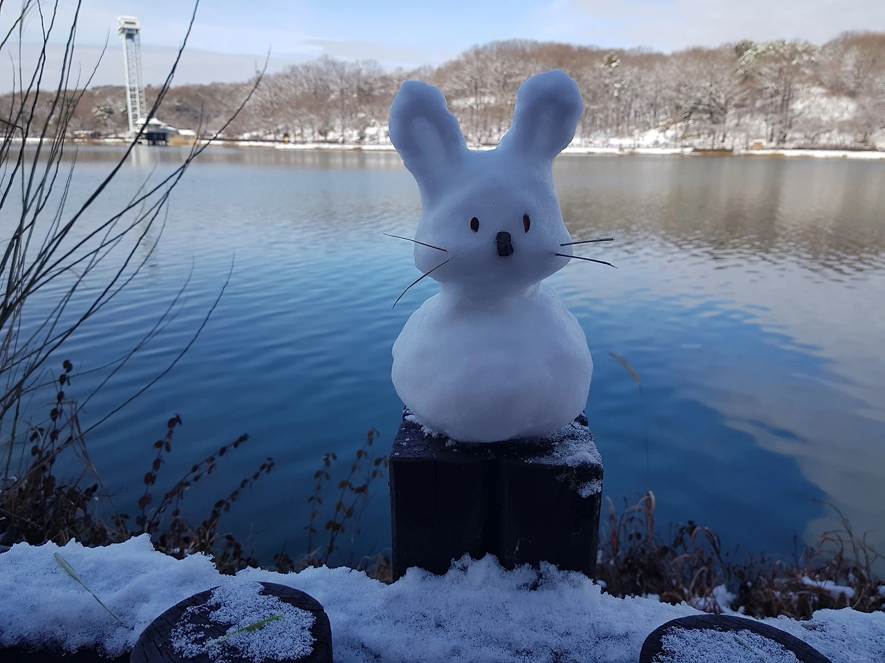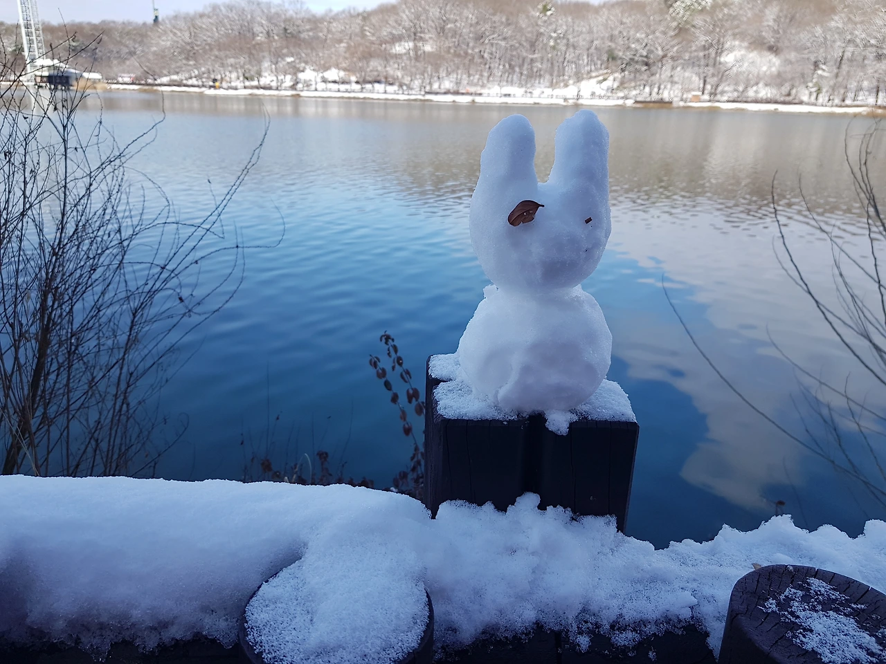 호숫가 눈인형