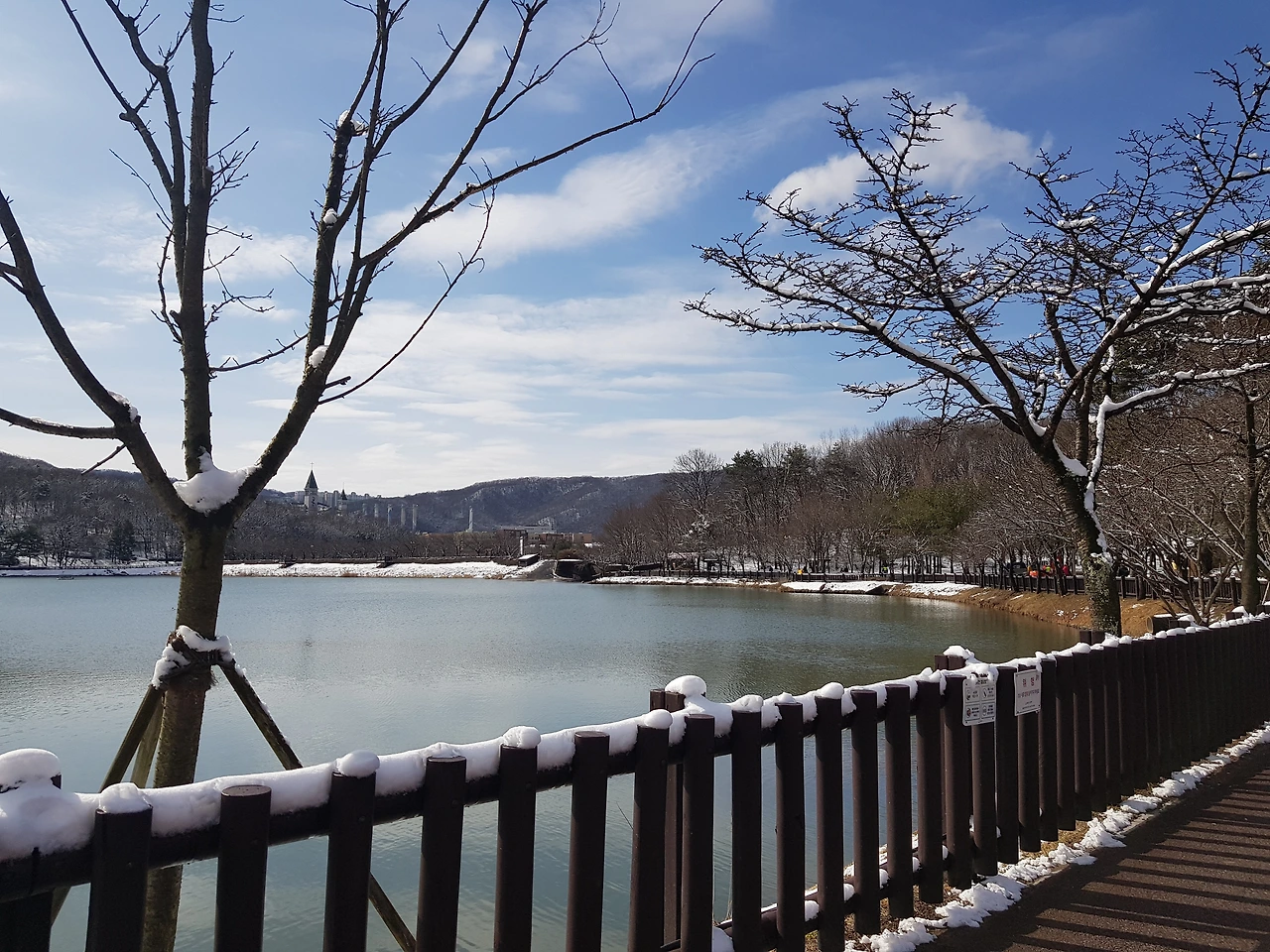 둘이서 씩씩하게 호수 한 바퀴