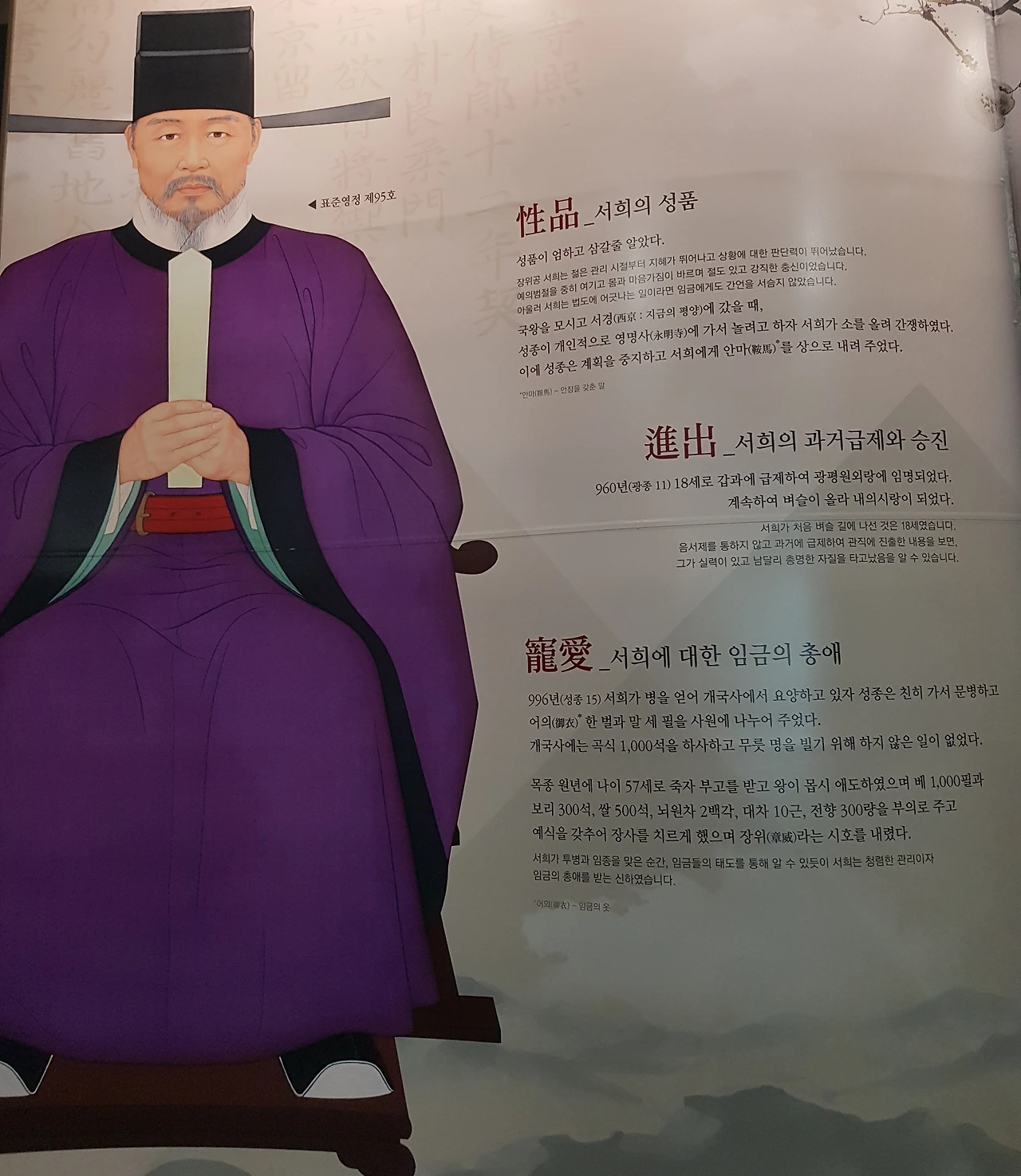 전시관에서 서희에 대해 서술해