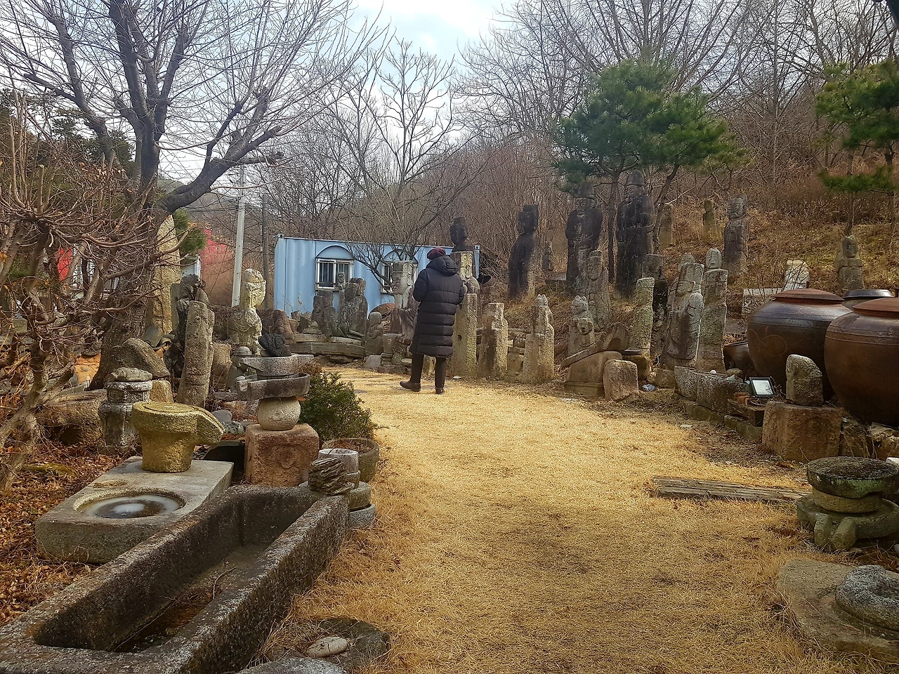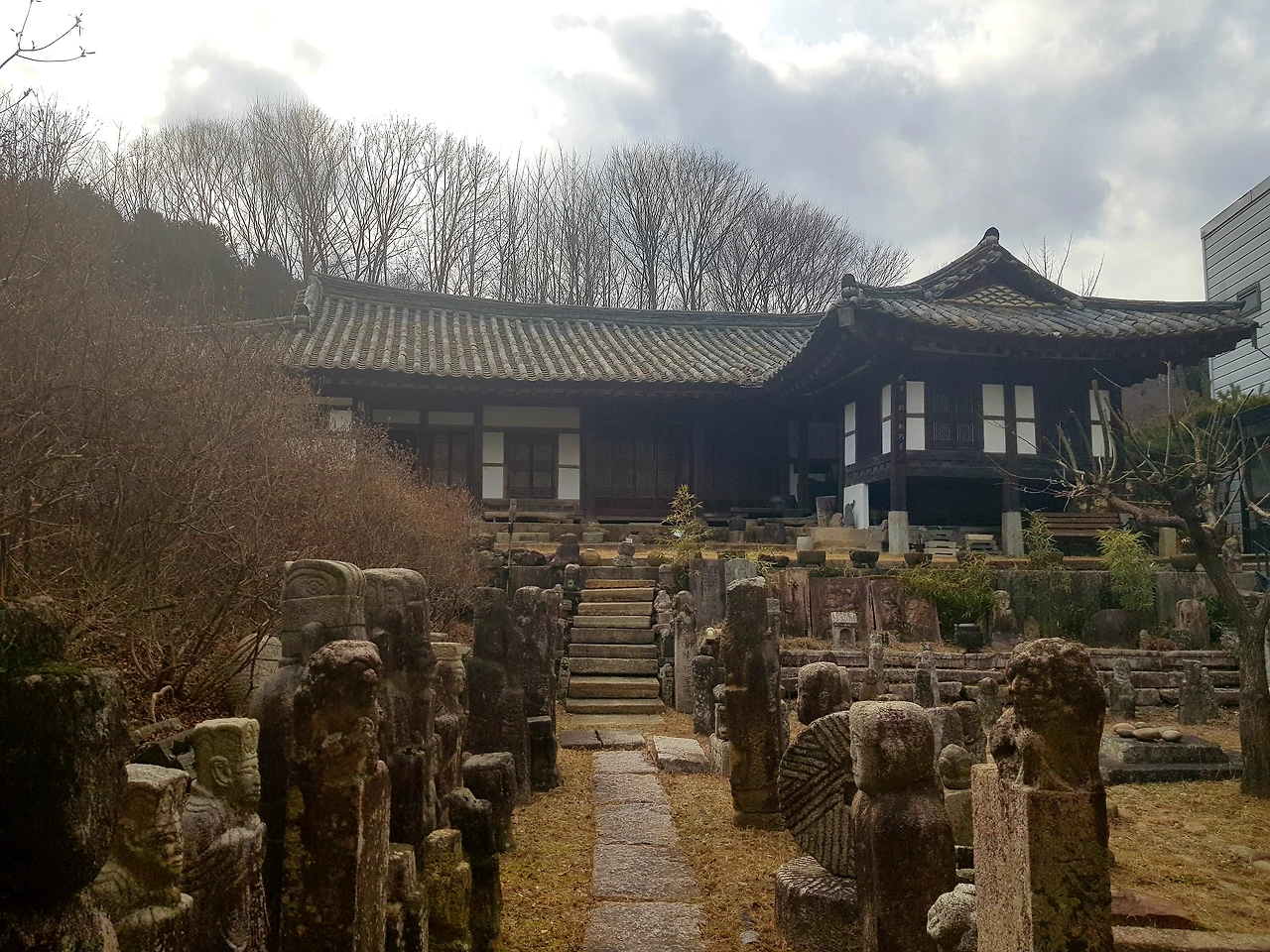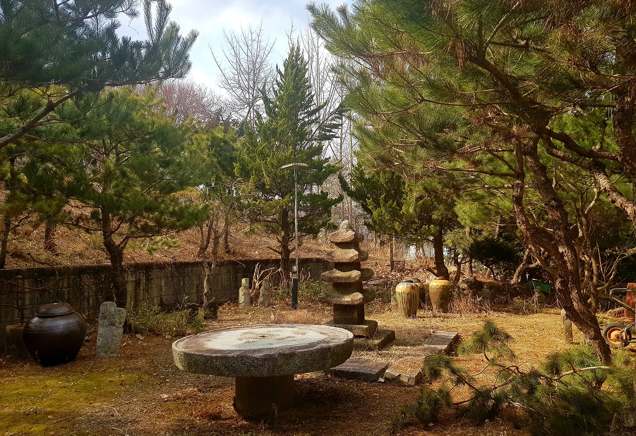 마당에는 다양한 동자석과 문인석이 자리하고 오른쪽 옆마당의 풍경은 고즈넉한 정원이었다