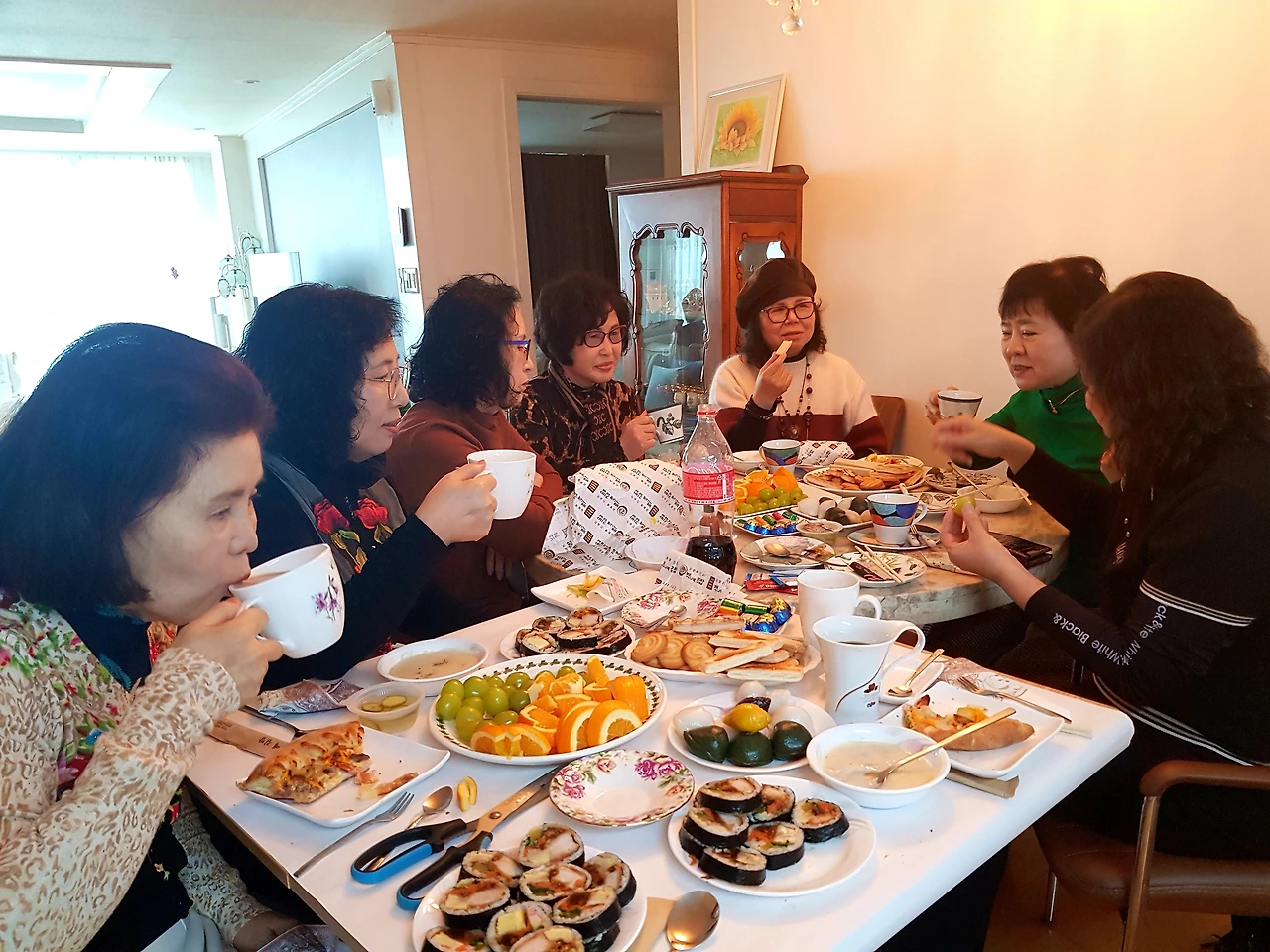 동네 봉사에서 알았던 믿음직한 넷째 언니, 주민자치위원회에서 함께한 여섯째와 총무, 갑작스럽게 남편을 떠나보내고 힘들어하던 때 억지로 끌어내 함께하게 된 막내다