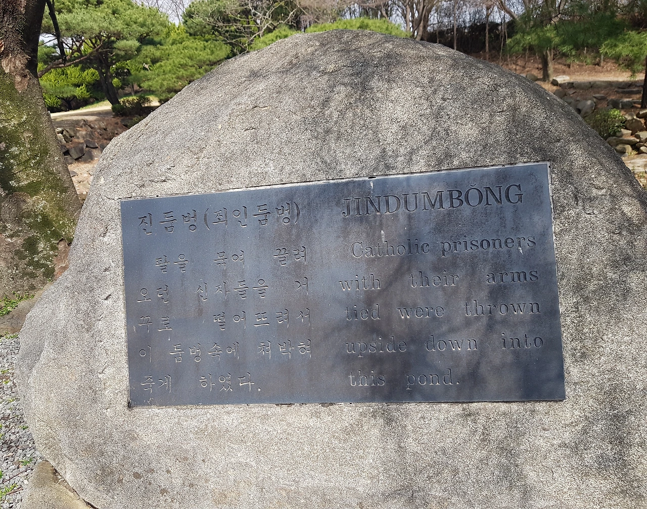 돌아보며 가슴 아프고 눈물 쏟아지는 태질했던 넓은 돌과 팔다리를 묶어 빠트렸던 진둠벙, 이름을 알 수 없는 무명인들의묘는 당시 해미에 막강한 권력을 휘두르던 무관 영장이 권력 남용으로 기록도 남기지 않고 조정에 알리지도 않고 무자비하게 다양한 모습으로 고통과 두려움의 크기를 키우며 살육을 저질렀기 때문에 이름을 알 수 없는 수많은 사람들의 희생이 있었다는 것이다