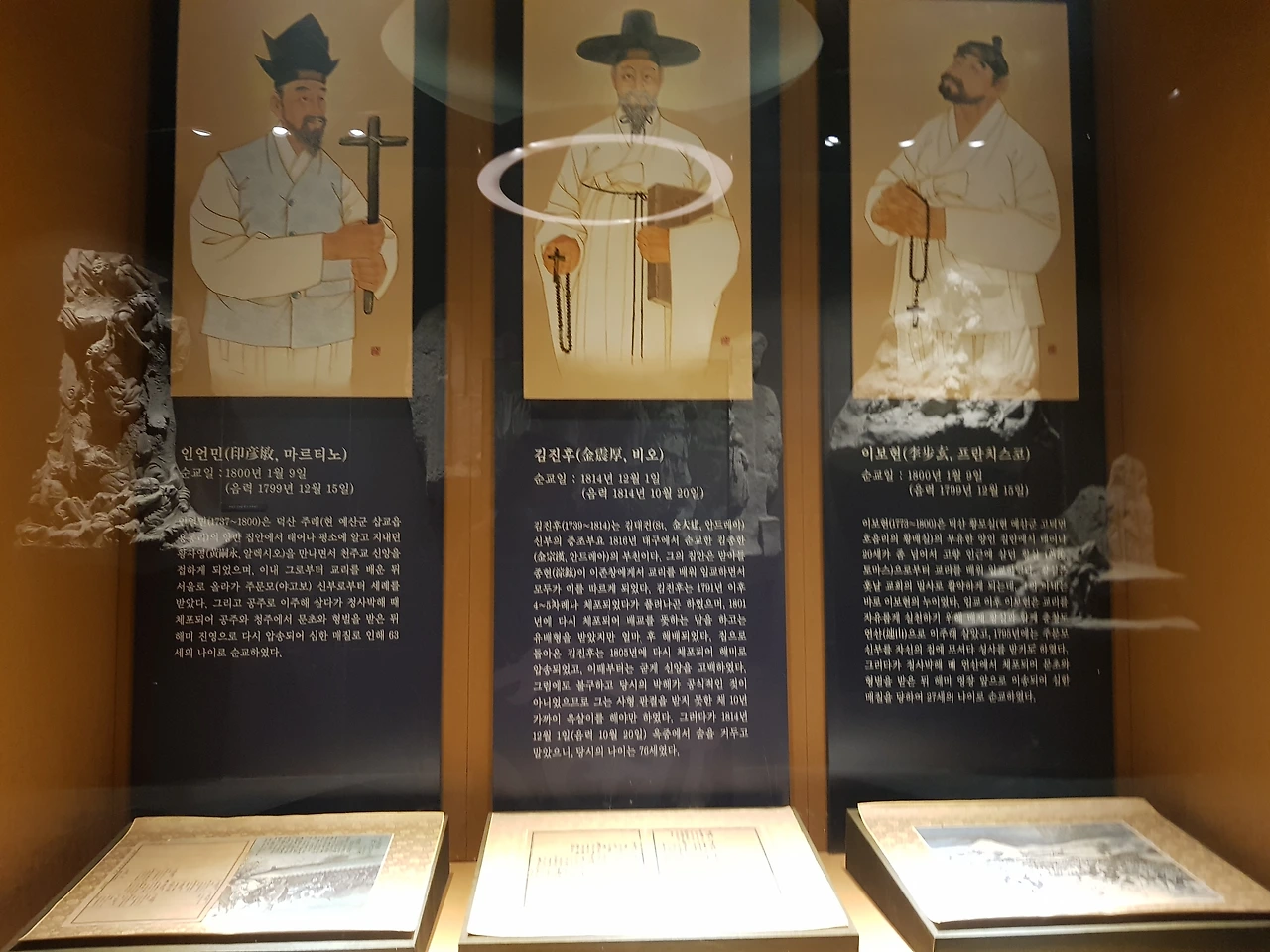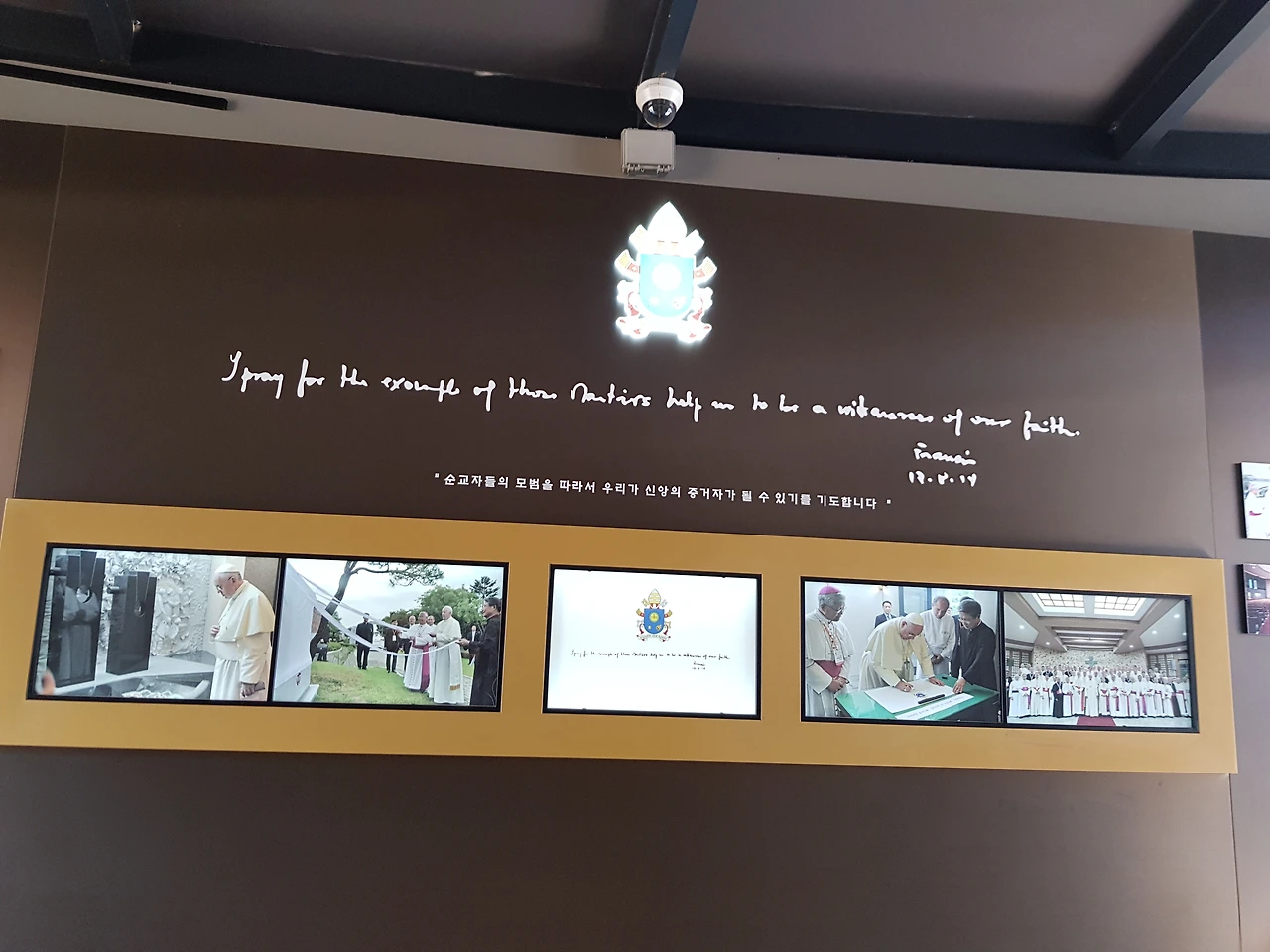 이곳에도 교황의 행적이 위쪽에 사진으로 전시되어 있었고 순교자들의 약간의 기록물과 어느 작가님의 작품일까?