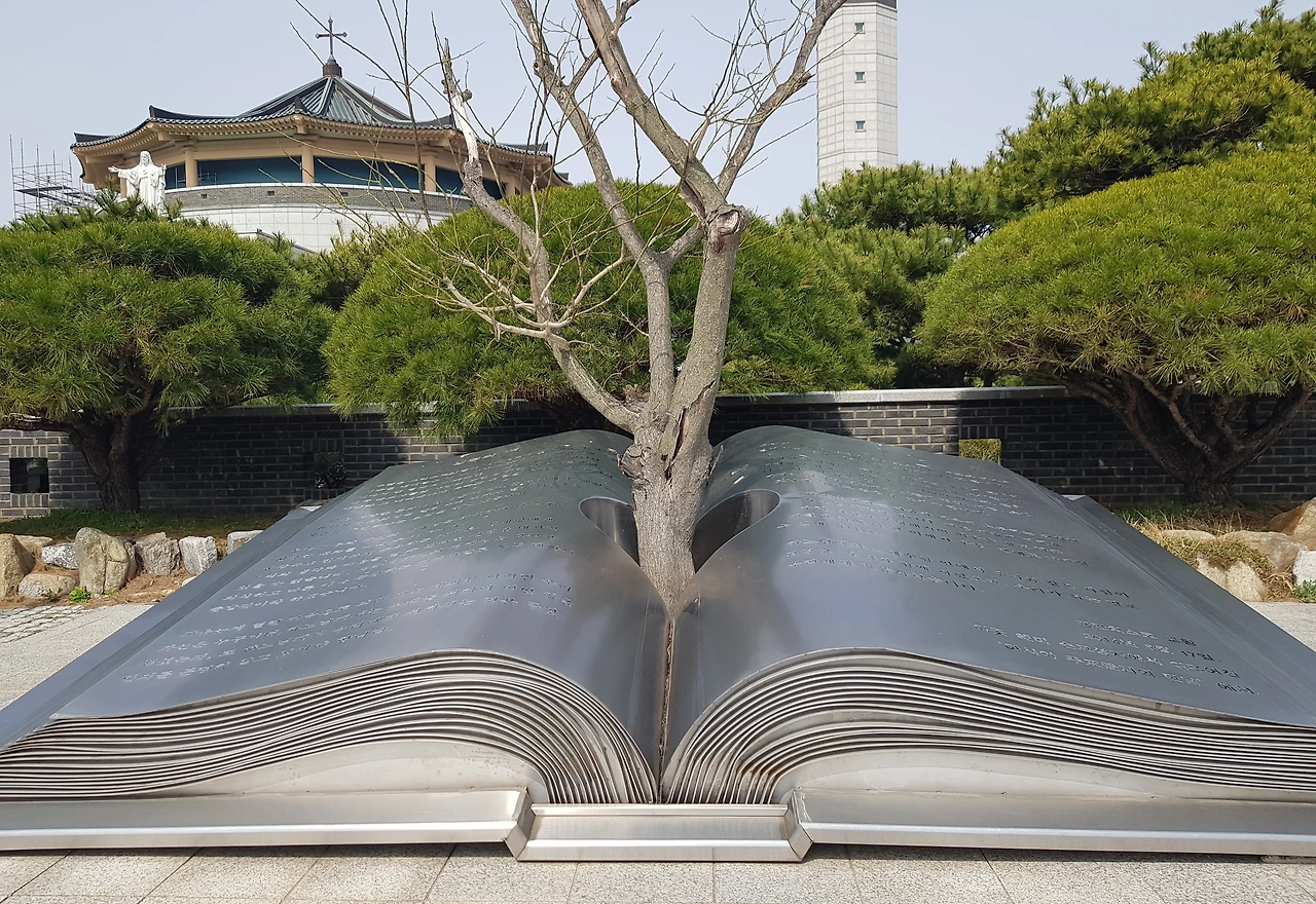 한참을 걸어 해미 순교자 국제성지에 도착해서 보니 앞 전면에 생명의 책이란 작품이 펼쳐있다