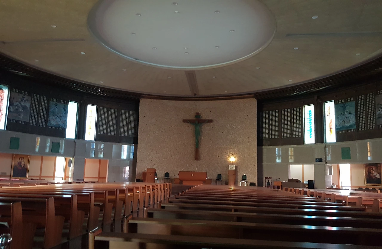 1층 안으로 들어가 소강당이 있었는데 예배 중이라고 2층에 대강당에 올라가 보았다
