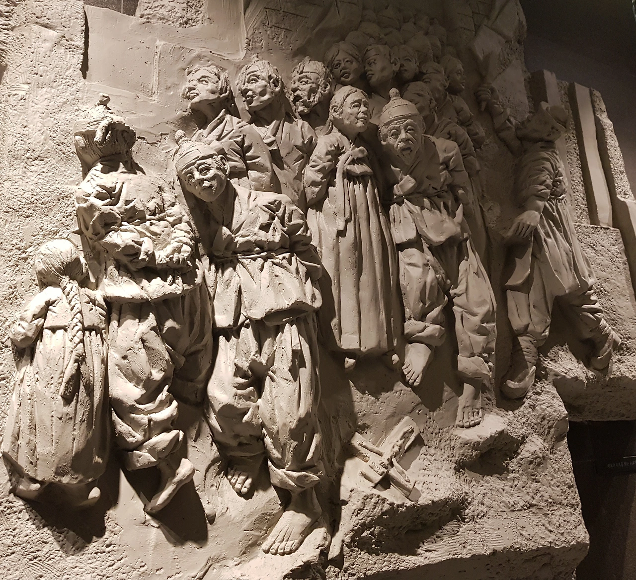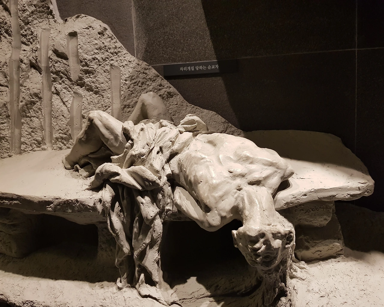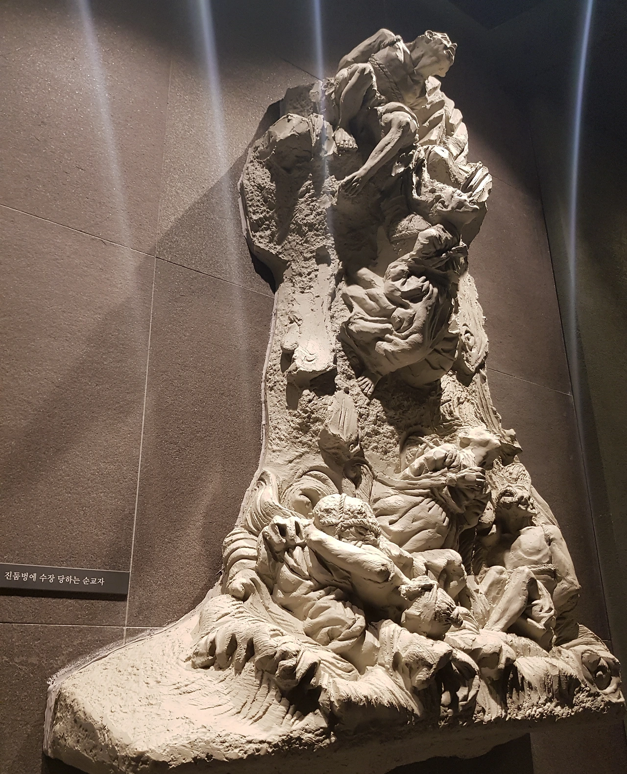 순교성지 기념관 입구에 들어서니 줄에 엮여 사형장으로 끌려가는 모습이 있었는데 그 평안한 표정에 가슴이 매였다