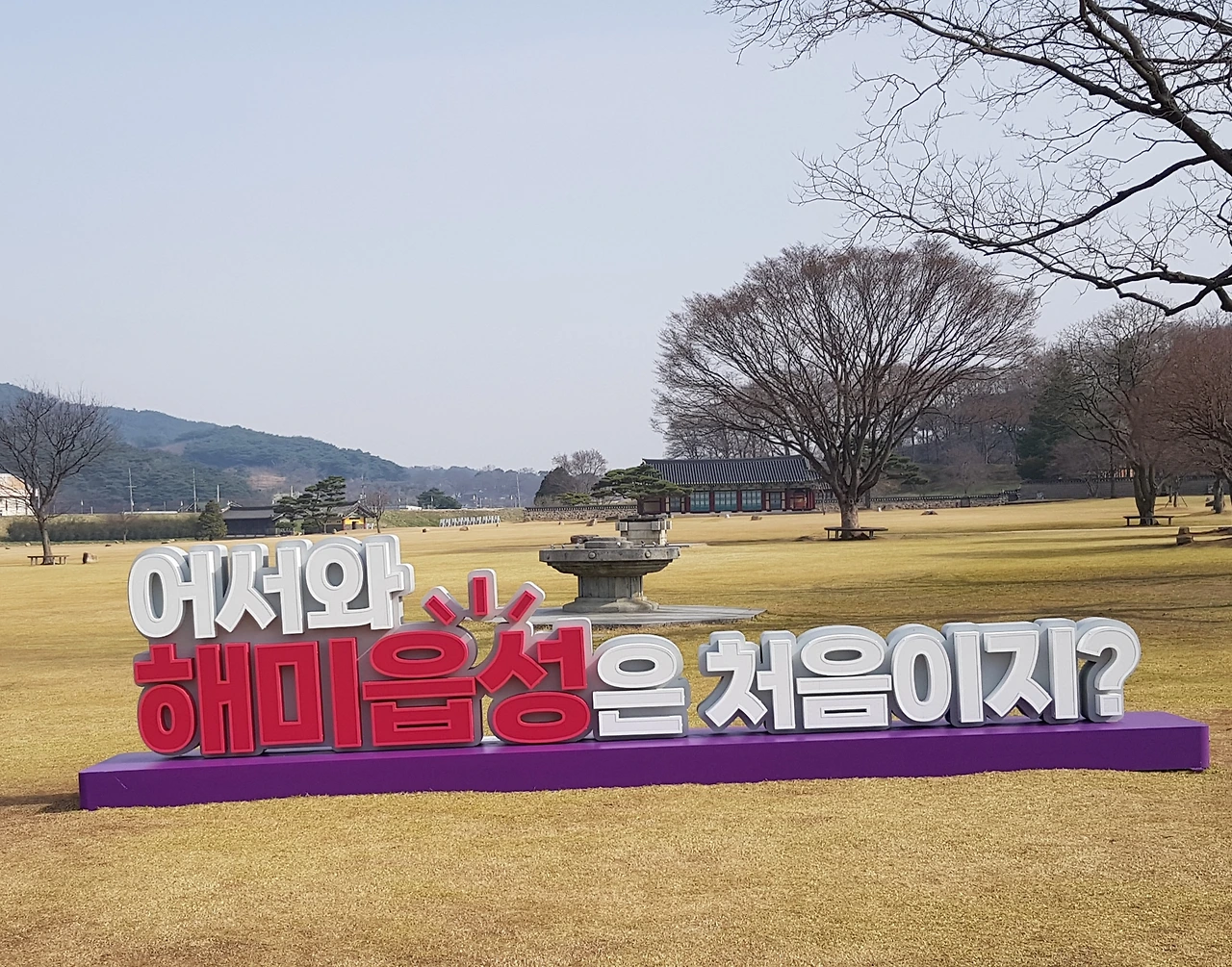 ㅡ어서 와 해미읍성은 처음이지?ㅡ라는 환영 글 앞에서 기념사진을 찍고 있었는데
